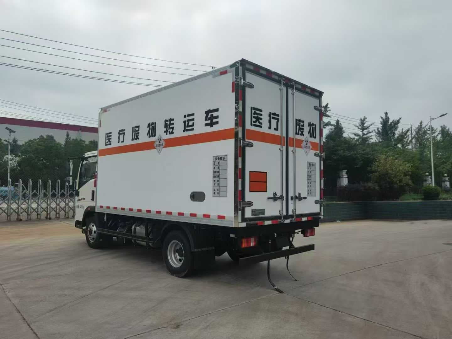 医废厢体配置:厢体材质采用外玻璃钢,内全防腐不锈钢,喷雾系统,紫外线消毒灯,装防腐不锈钢污水收集箱,后双开门,厢体右侧靠前选装开侧门,门边条采用迷宫式橡胶密封条,底部污水槽,污水箱,净(药)水箱,负压机(选配),铝合金型材包边,不锈钢包角,不锈钢门锁,不锈钢门框及合页。后门加门中门(选配)。