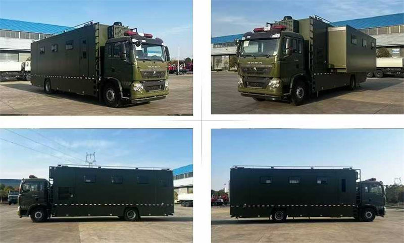 该车可同时满足24人到32人同时就寝,并配备了盥洗间,空调,暖风机,多媒体指挥中心等,是野外应急作业最常见的保障车辆。更多后勤保障车技术规格方案