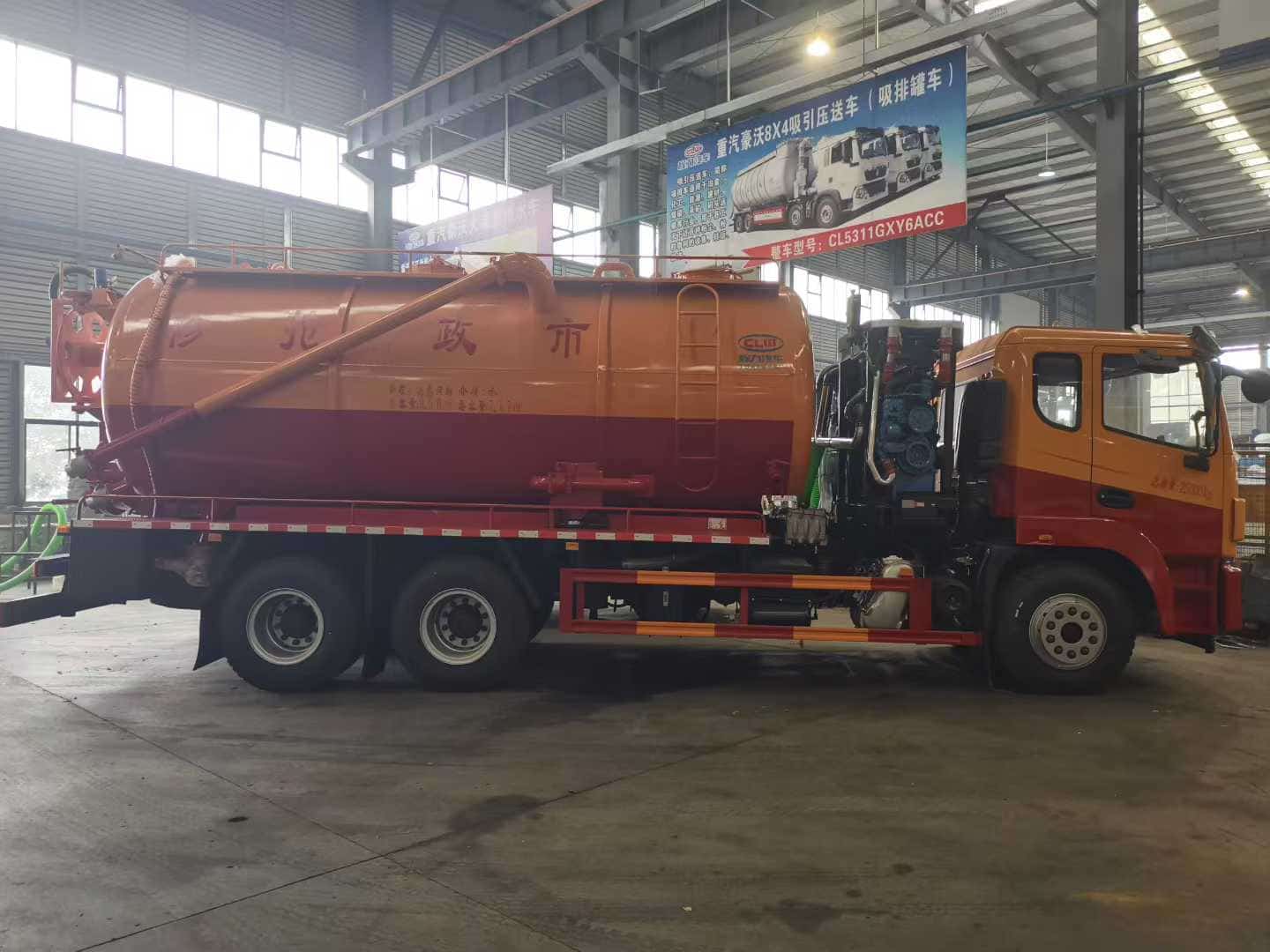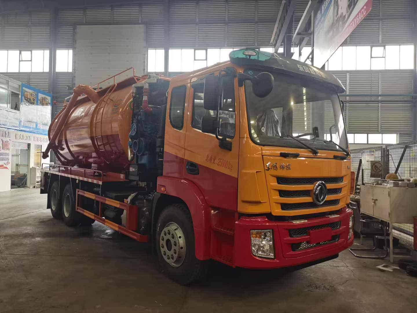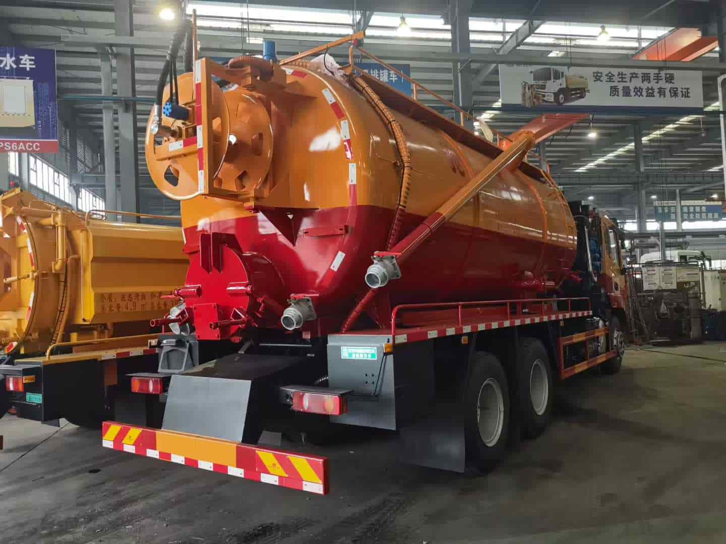 上装配置:罐体容积约22方,8m碳钢板材,清水约5方,其余为吸污,两仓球阀互通。两仓中间用封头,品浮350流量高压清洗泵,配100米高压管。选装安装山东258水环泵配420马力副发,配8mm厚方管加强底座。卷盘装后封头180度旋转,后封头液压打开。后封头上一个600水泥盖放污,可液压开启,侧面一个6寸偷排阀,后封头一个6寸出口,一个100寸进口直通罐顶,罐内铺不锈钢板,8mm厚方管加强型车架,自卸车设计,罐体尾部箭头灯,带一个视污窗口。带8米吸污管。其余厂内标配!