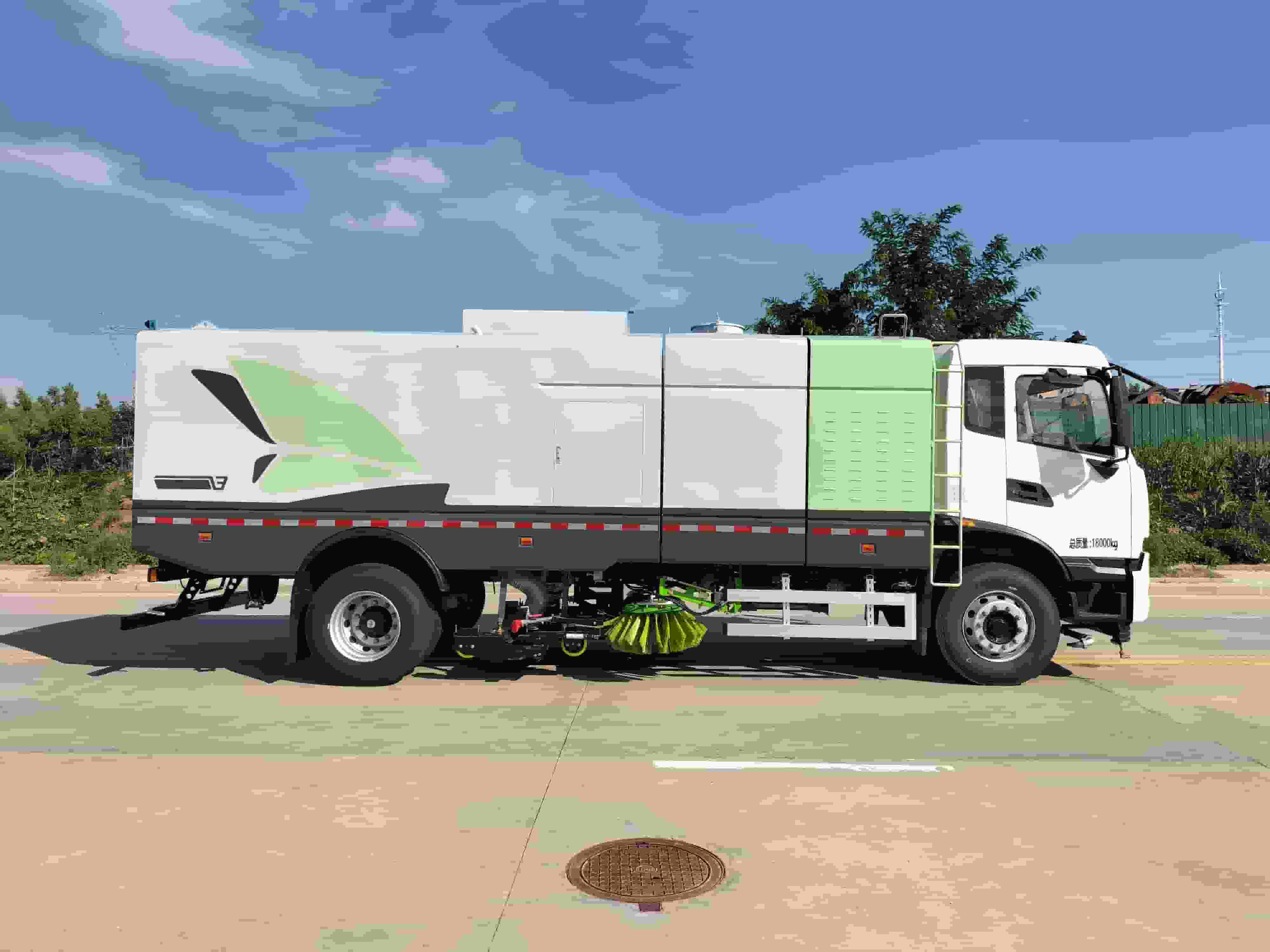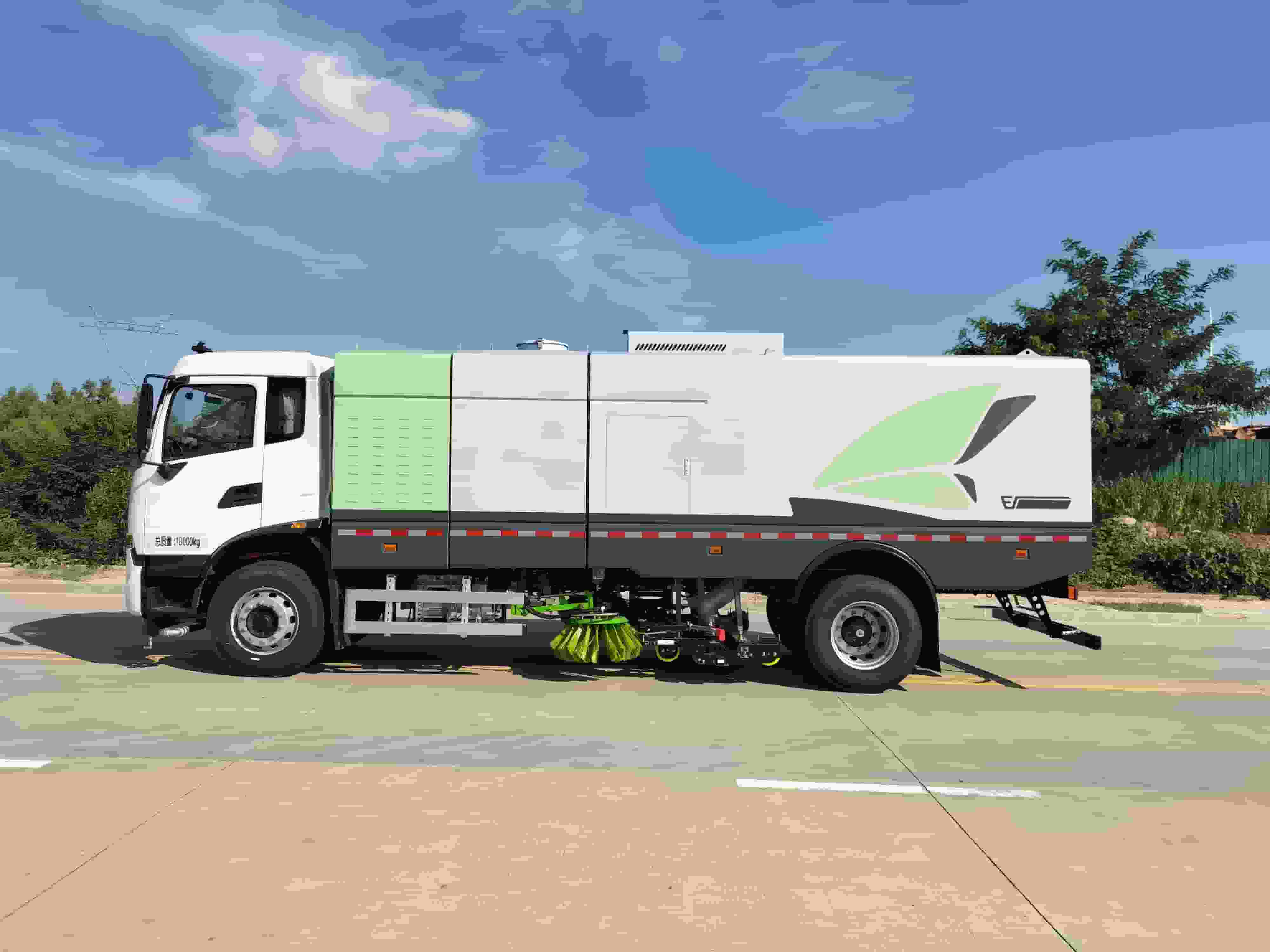 其他配置:底盘电池提供动力,永磁同步电机驱动,可根据需要实时调速,取力操作与底盘行驶系统无关联,用车体验感极佳,中置2扫盘,三洋马达,GTM高压水泵,皖液齿轮泵,海普瑞斯液压油缸,万向高压路沿清洗,免维护离心式风机,不锈钢水箱垃圾箱,不锈钢高压管路,施耐德控制开关,美国传感器,尾部LED箭头灯,垃圾箱、水箱均带防溢或低水位报警装置,倒车及洗扫状态室内监控系统,尾部带电控操作系统,15m高压冲洗卷盘最大清洗宽度3.5m,高压冲洗21m,电气系统由底盘车电路专用工作装置操作控制电路组成。