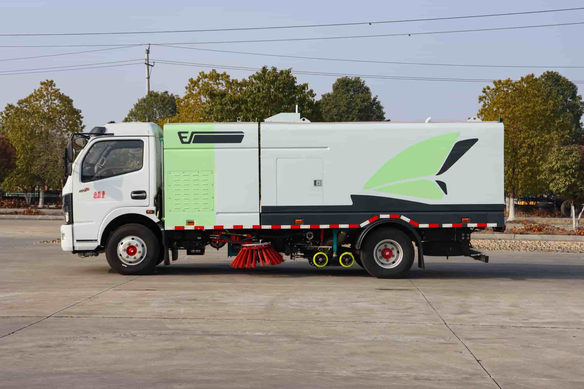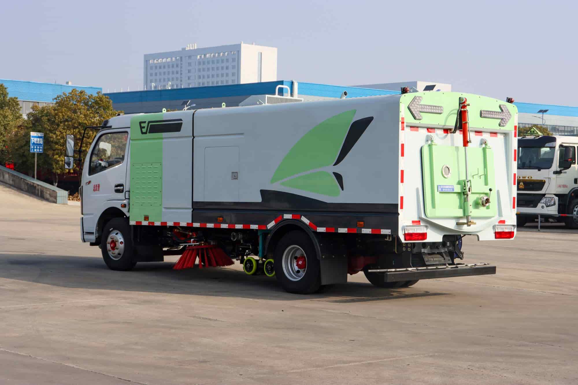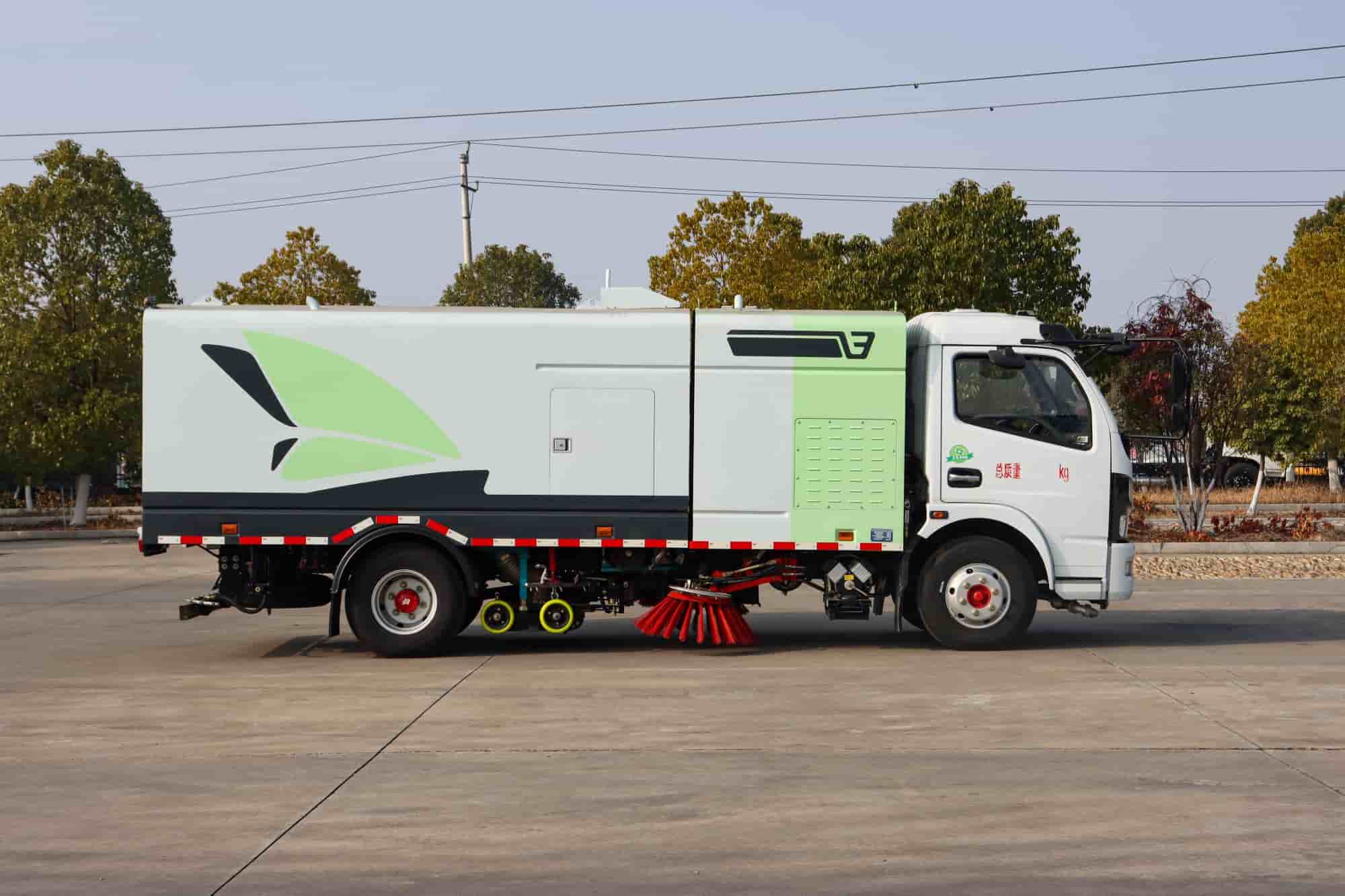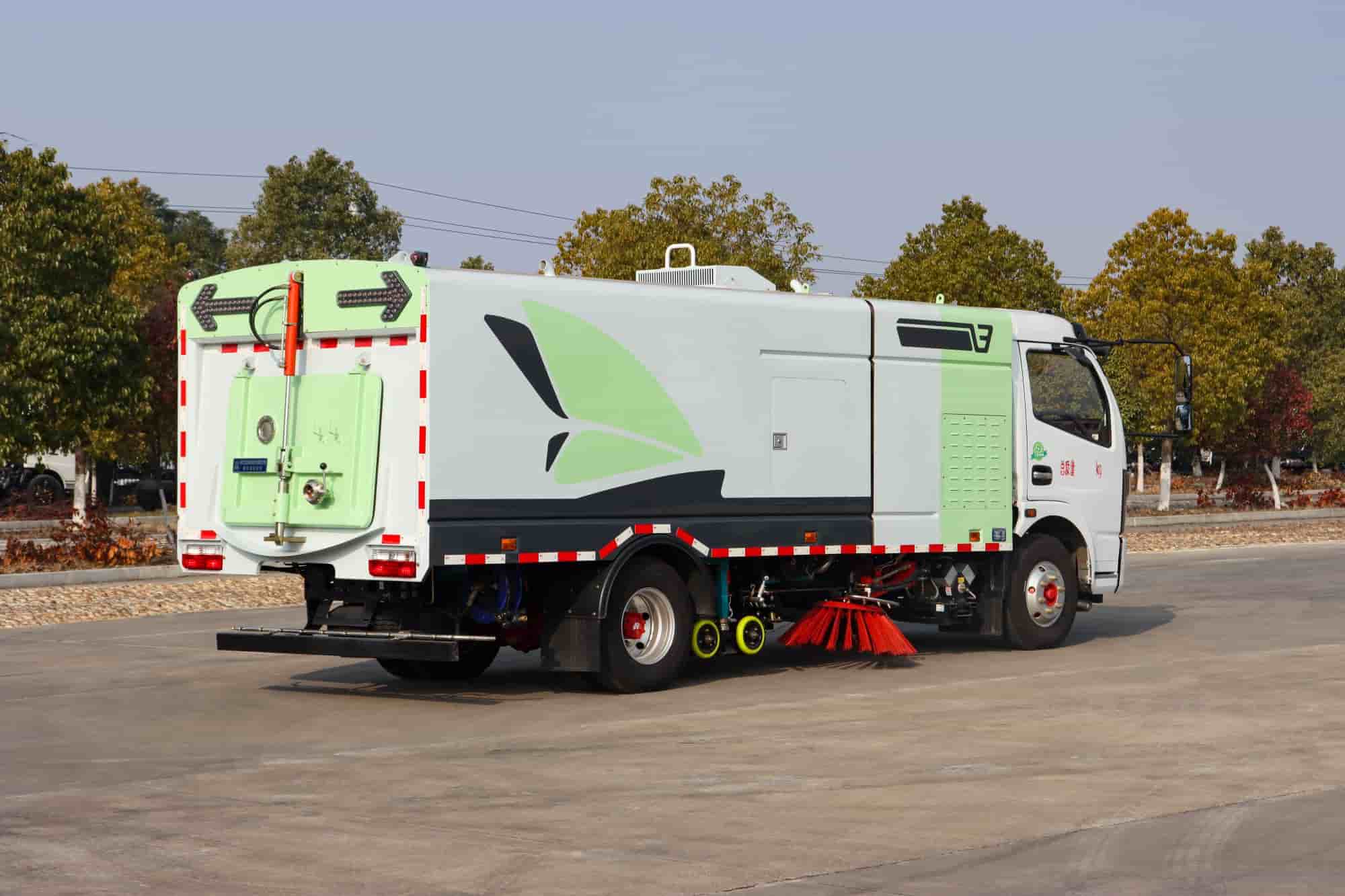 底盘电池提供动力,永磁同步电机驱动,可根据需要实时调速,用车体验感极佳,中置2扫盘,力顿马达,GTM高压水泵,皖液齿轮泵,海普瑞斯液压油缸,万向高压路沿清洗,免维护离心式风机,不锈钢水箱垃圾箱,不锈钢高压喷杆,施耐德控制开关,美国传感器,尾部LED箭头灯,垃圾箱、水箱均带防溢或低水位报警装置,倒车及洗扫状态室内监控系统,尾部带电控操作系统,15m高压冲洗卷盘最大清洗宽度2.5-3.5m,电气系统由底盘电路专用工作装置操作控制电路组成