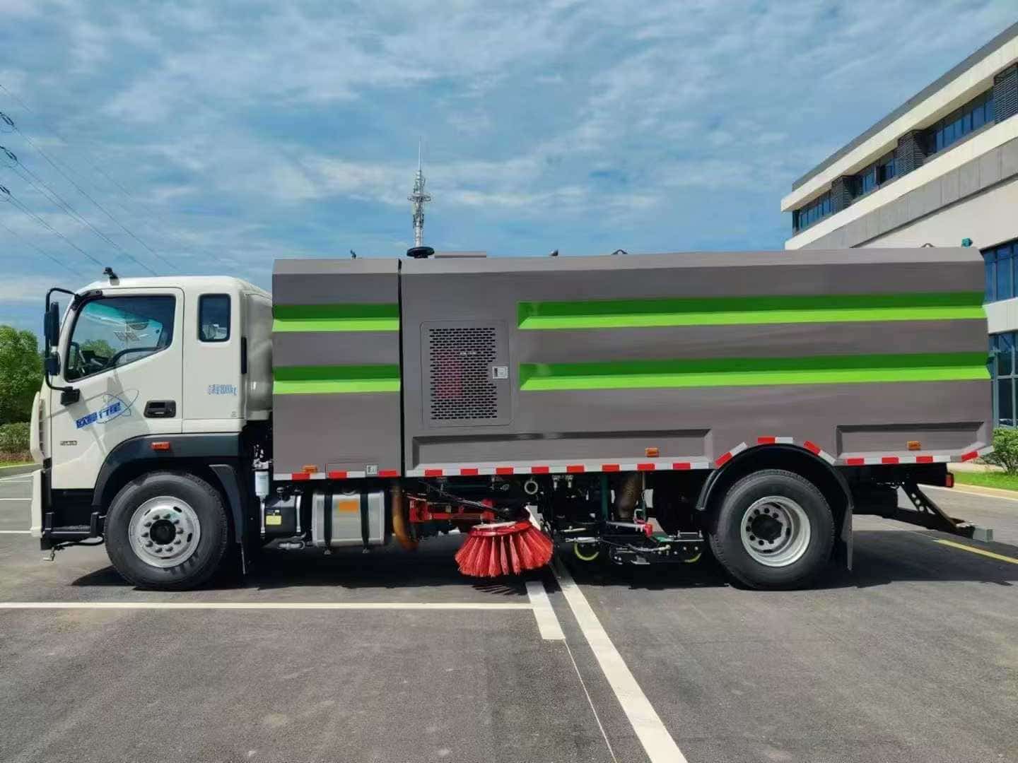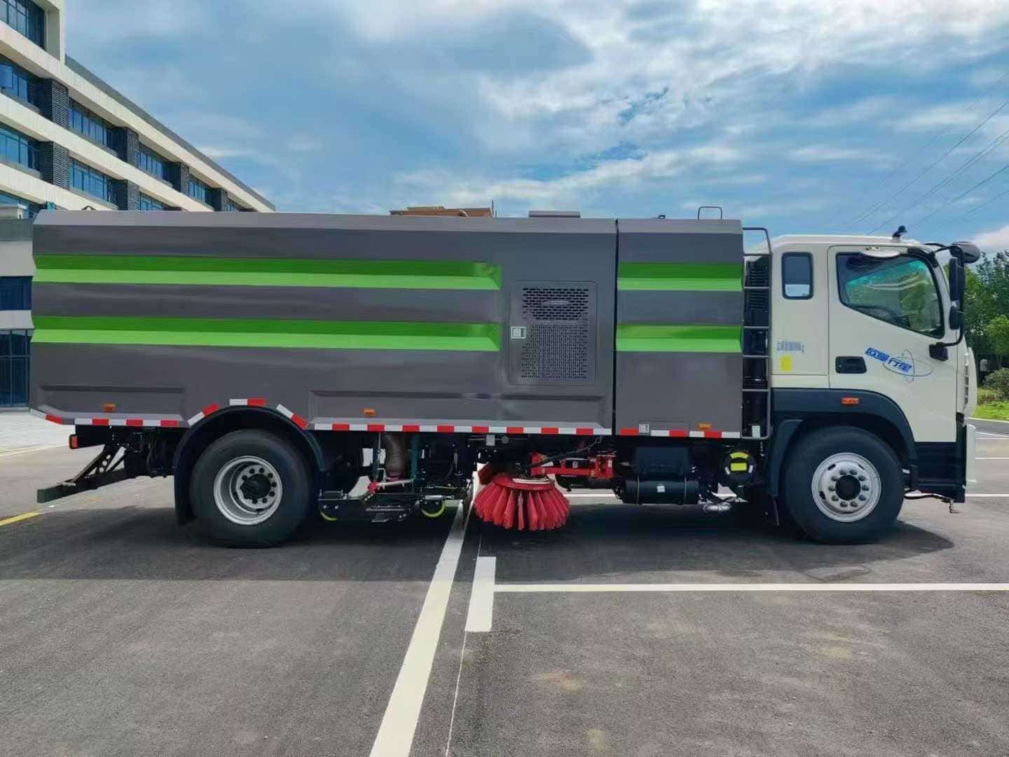 副发动机采用康明斯170马力,带2个中置扫盘,力顿马达,海普瑞斯电磁阀,海普瑞斯油缸,高压水泵,高压前角喷,高压后喷雾,高压卷盘,高压路沿清洗喷头,低压前对冲,垃圾箱高压自洁,