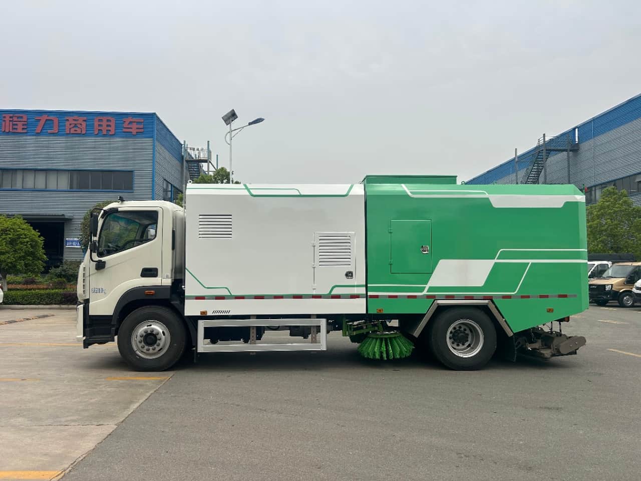 4.5立方不锈钢水箱、6.5立方不锈钢垃圾箱,垃圾箱上下隔舱、双电机操控系统,中置两扫盘,后置滚扫吸盘(内置高压喷杆、钢丝刷辊)、左右高压喷杆、洛阳北玻6.3离心风机、厦门南超动力输出、14组覆膜滤桶、CAN自动控制系统、多种语音报警及自洁功能。驾驶室内一键智能操作、室外摇控操作系统。