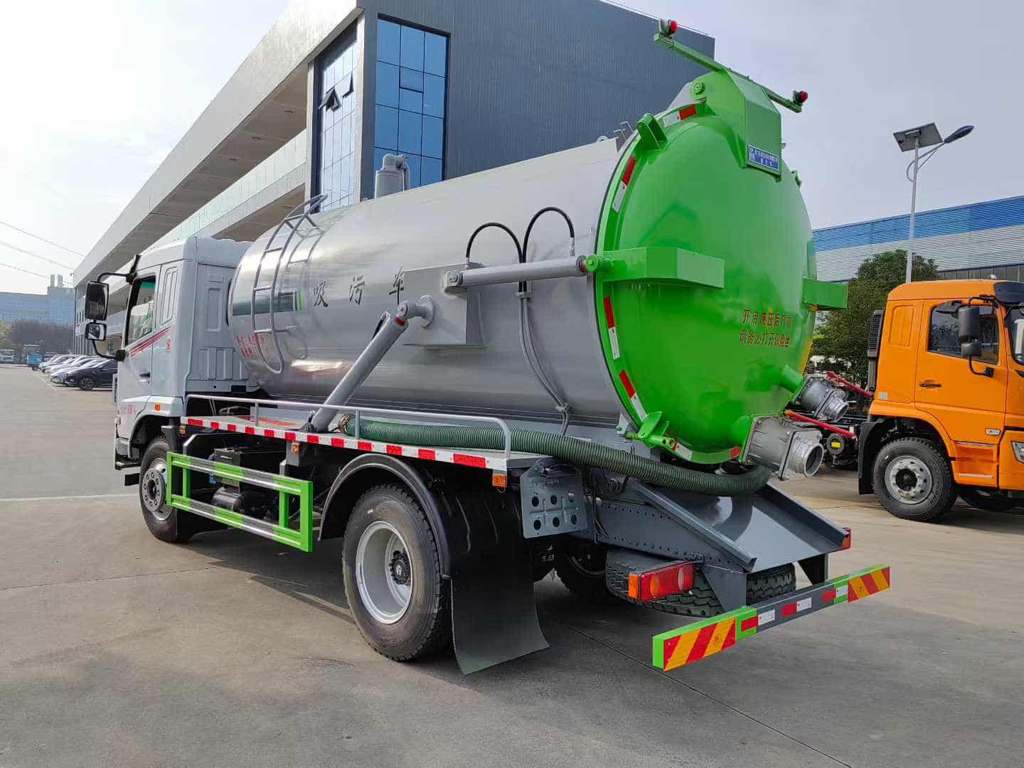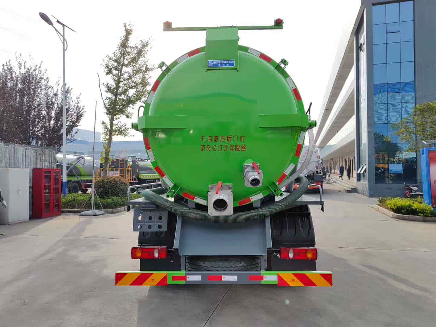 6.罐体带举升自卸功能,尾部后门可液压开启,带锁紧装置