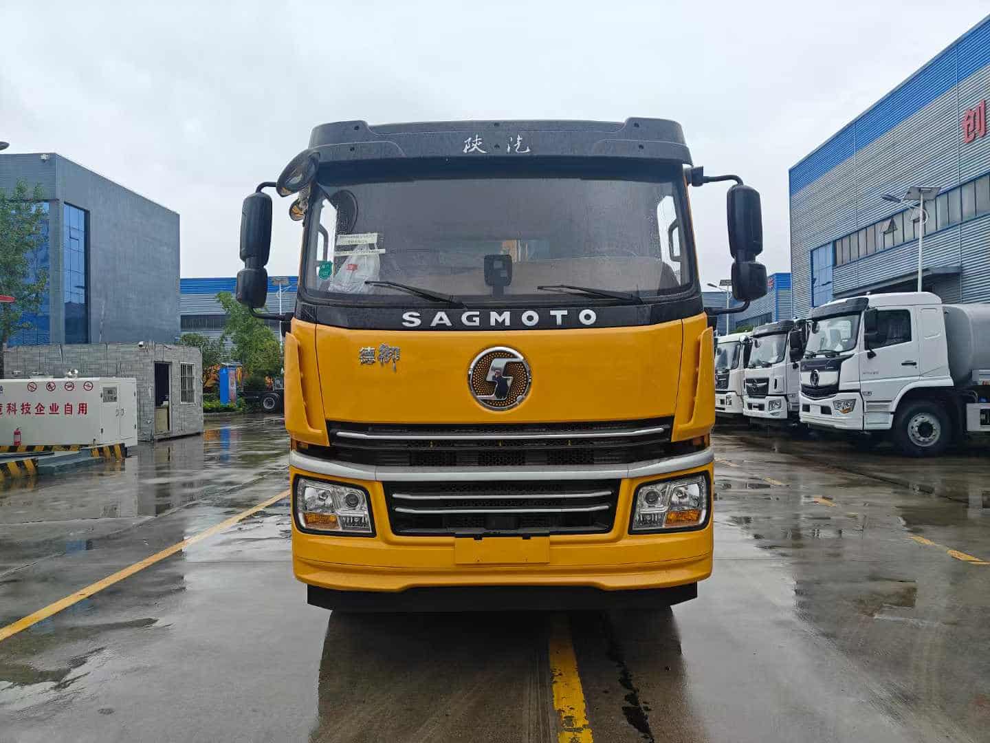 底盘配置:陕汽公司原装底盘,底盘型号SX1250GP6444C,国六排放标准,轴距4375+1350mm,玉柴300马力发动机,11.00钢丝胎原厂abs,带方向助力,离合助力器,气刹制动,带冷暖空调,11.5吨后桥,铝合金油箱。气囊座椅,全包裹座椅坐垫,原厂双层大梁,法士特9档变速箱。