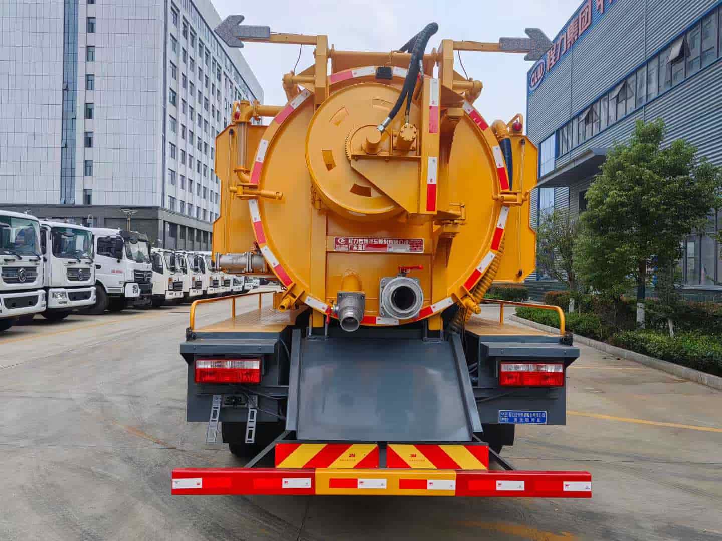 上装配置:罐体采用武钢优质板材制作,水箱:3.5方,污罐:9方,吸污泵采用SK-12水循环泵,215流量高压泵,内径19毫米高压管60米,喷头10个,内径100毫米吸污管 8米一根。
