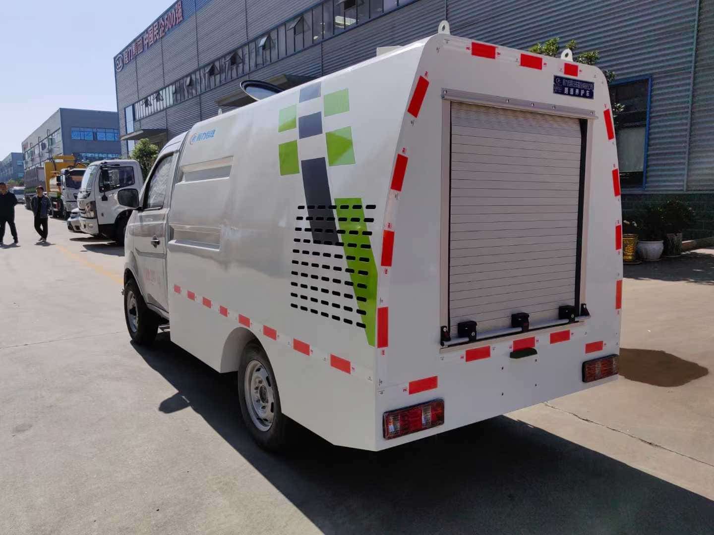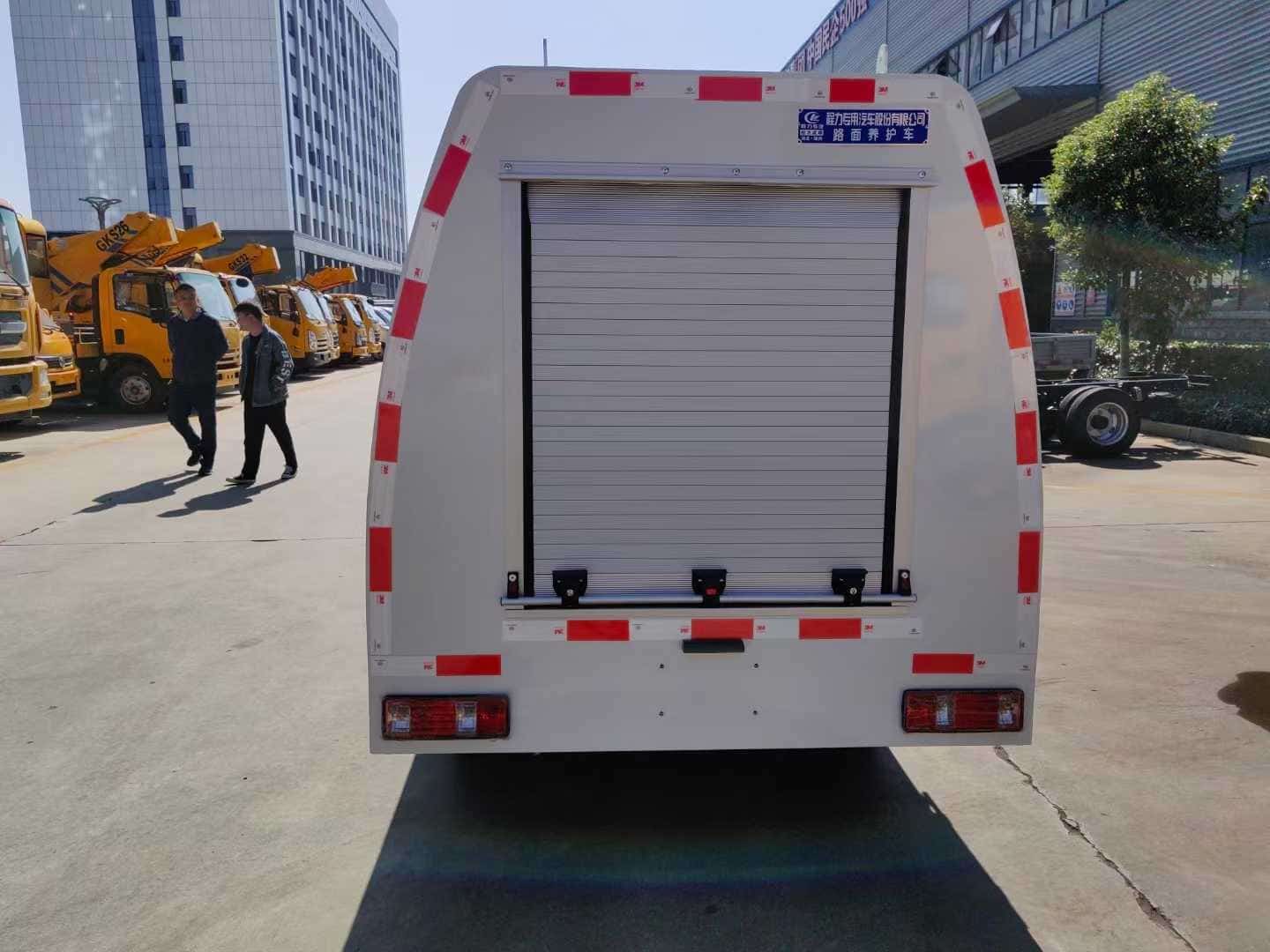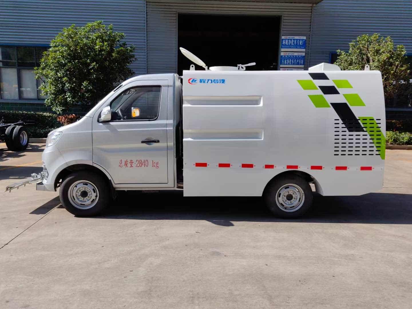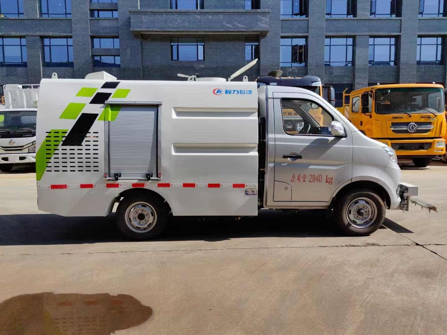 上装配置:高压水泵采用GTM品牌34.7L/min,240bar。副发动机采用美国百利通品牌,碳钢水箱做防腐处理,容积约1.5方,配20米胶管及喷枪,手推车、圆盘洗地车一个,PLC一键控制,整体式箱体。清洗装置的操作均为全电控制,驾驶员在驾驶室内即可完成操作,可上、下、左、右全方向摆动,适用于道路局部卫生死角的清除,严格按照公告生产。
