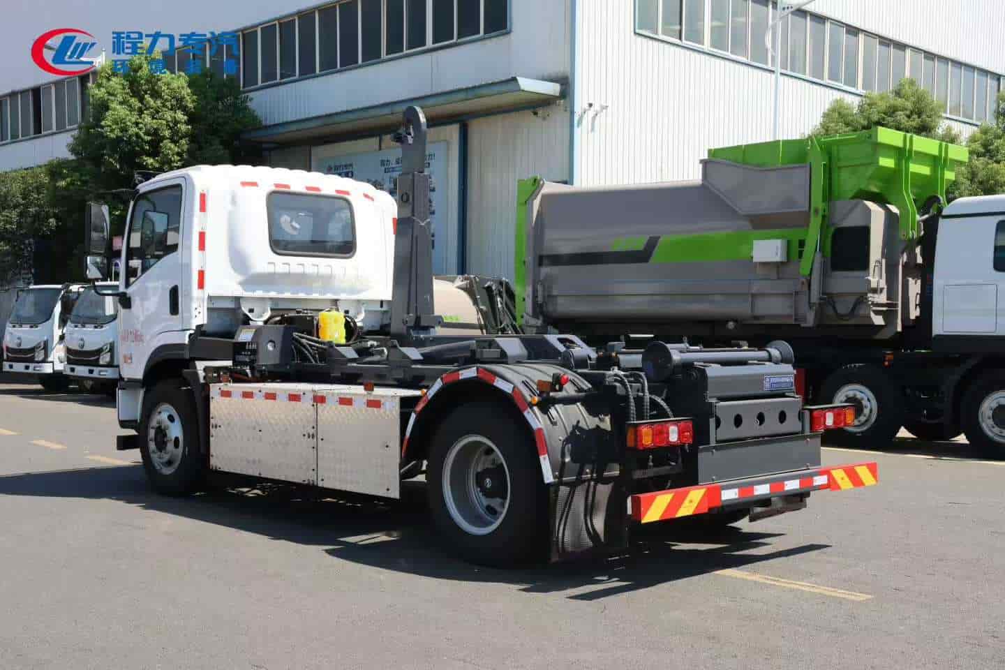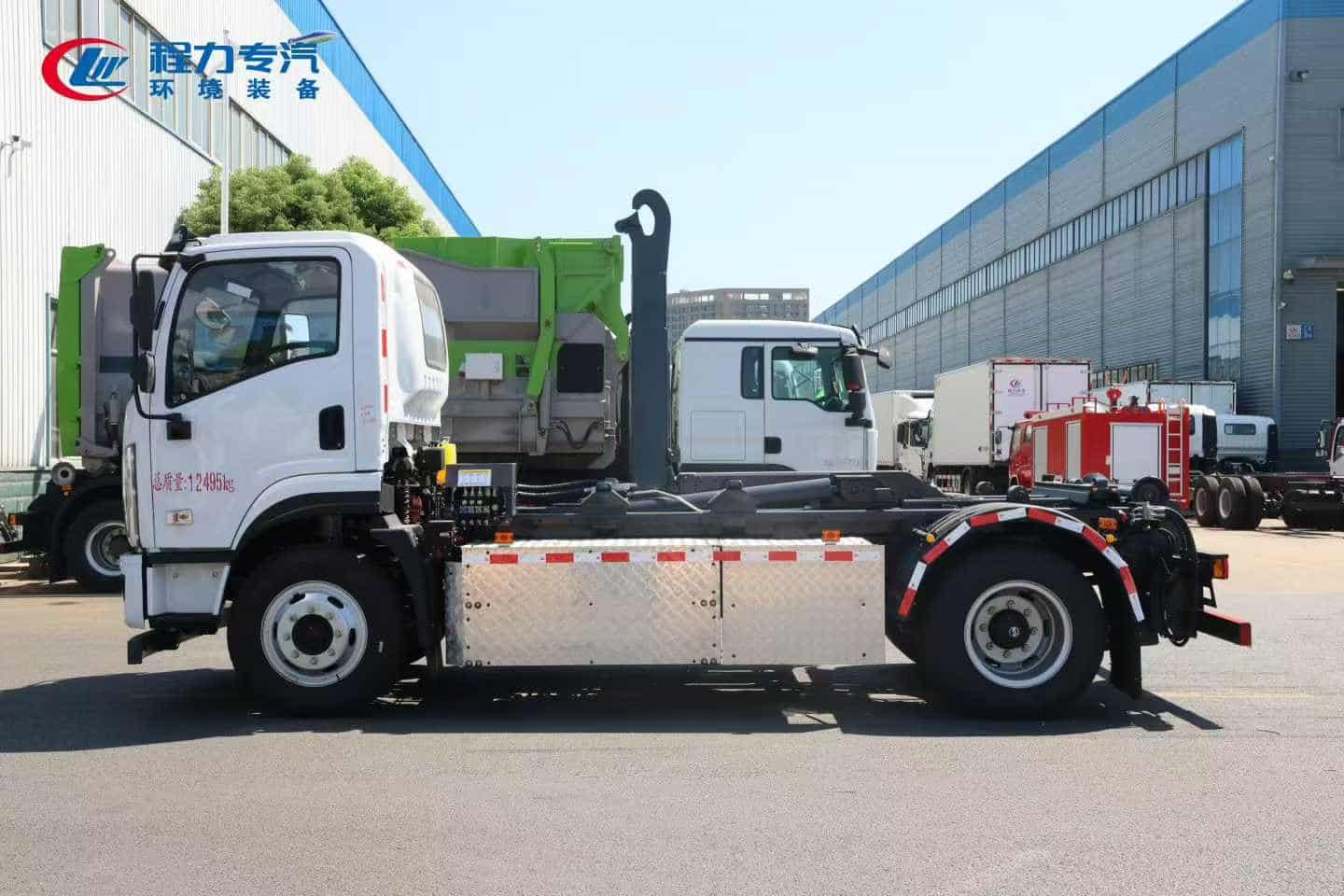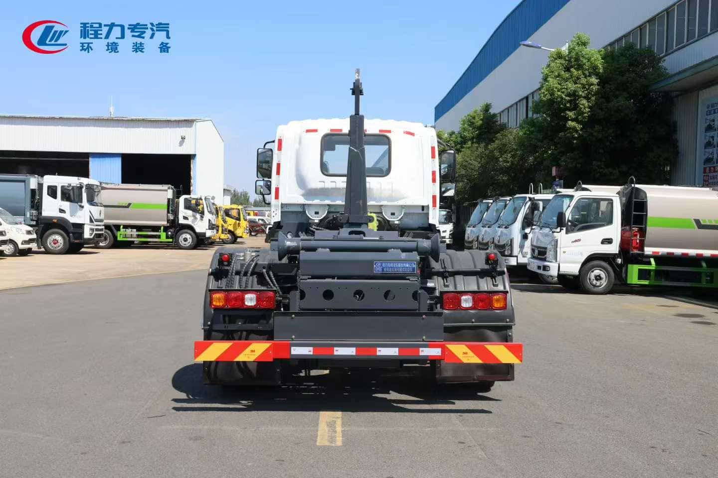 宁德时代电池容量165.68kwh,3800轴距,总质量12495Kg,续航220公里,轮胎8.25R20钢丝胎,起勾14吨上装,