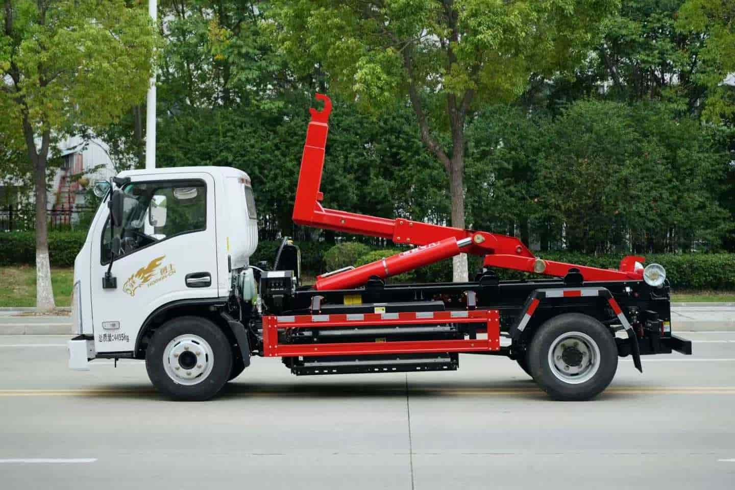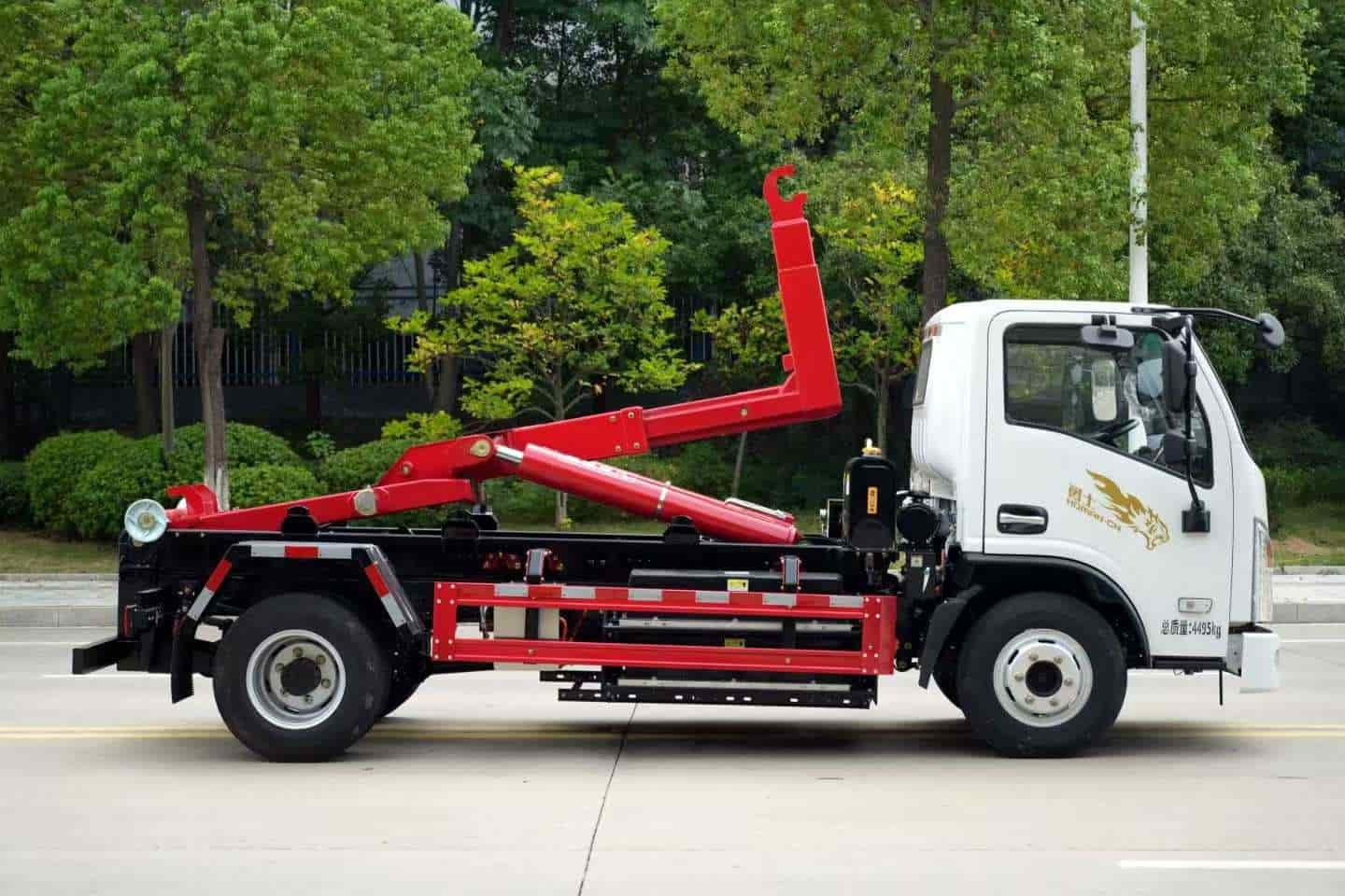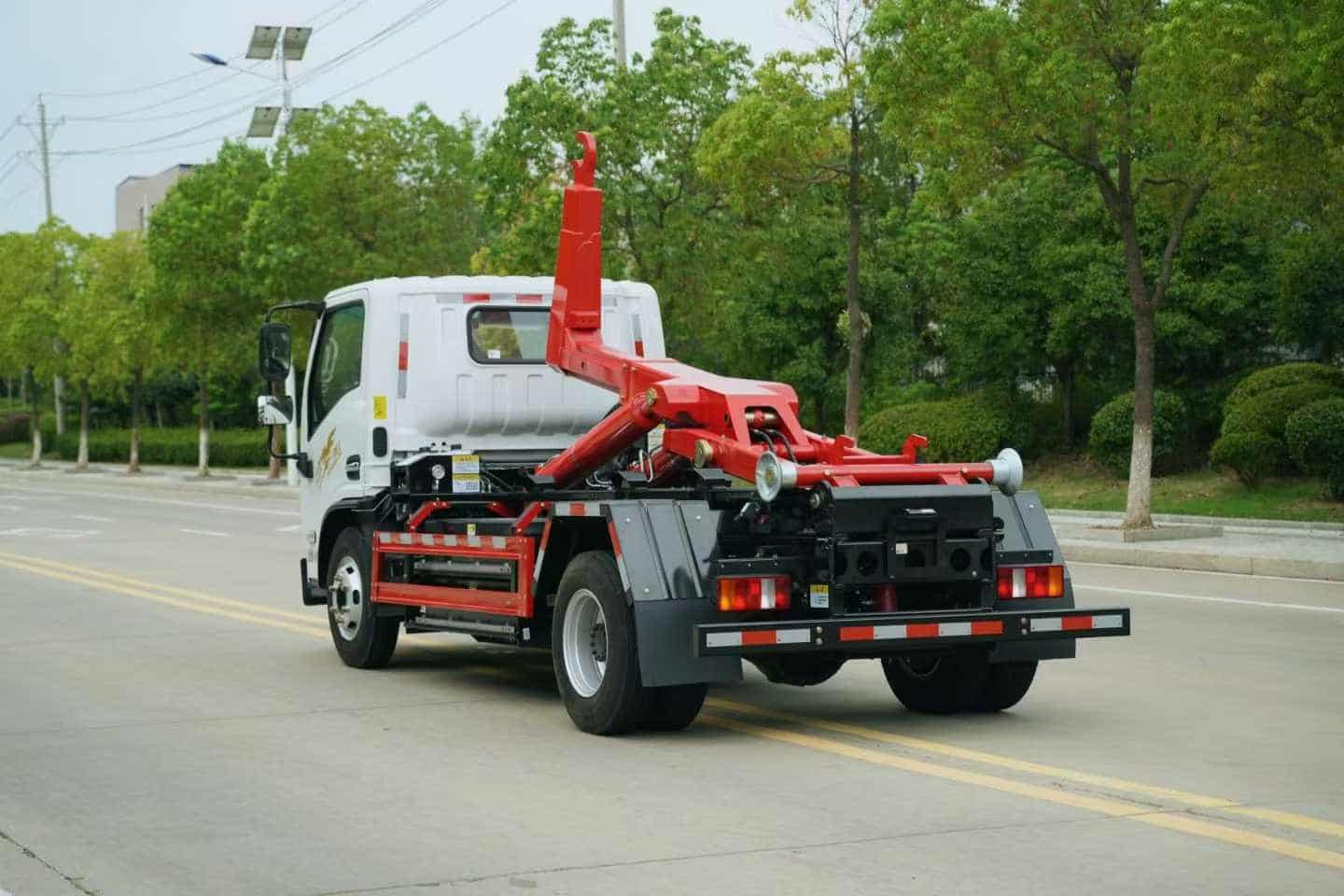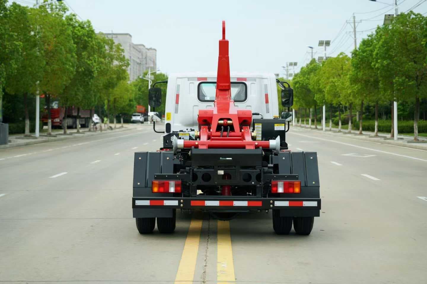 重载15吨勾臂上装,加强型副梁,加粗双举升油缸,标配手动、遥控操作,全上装喷粉烤漆工艺。