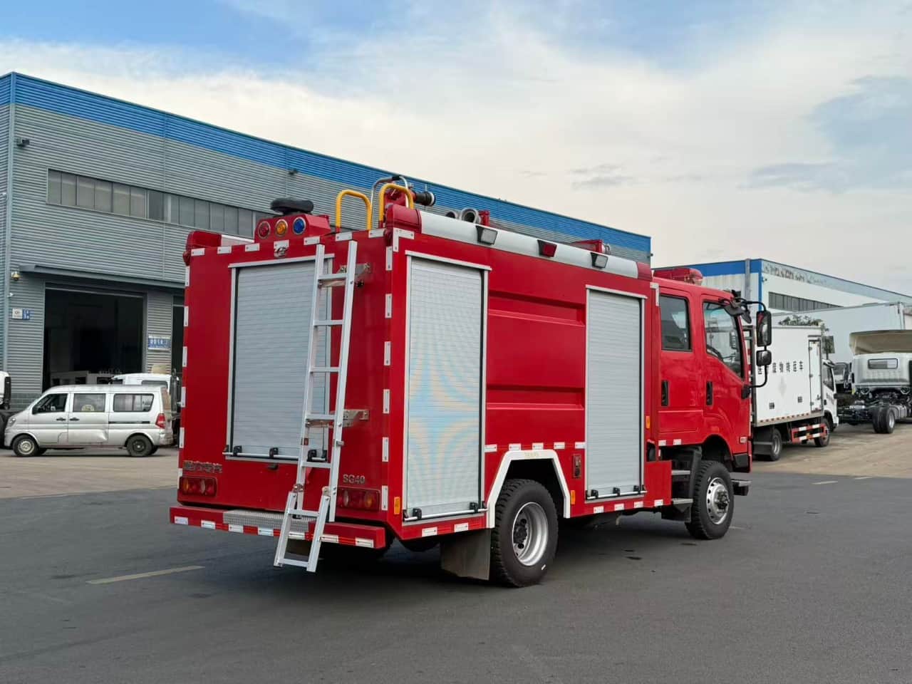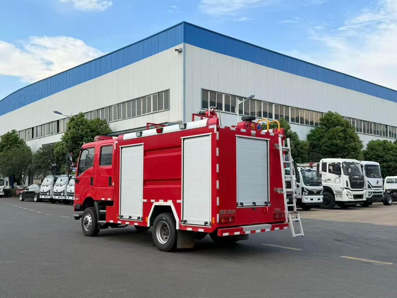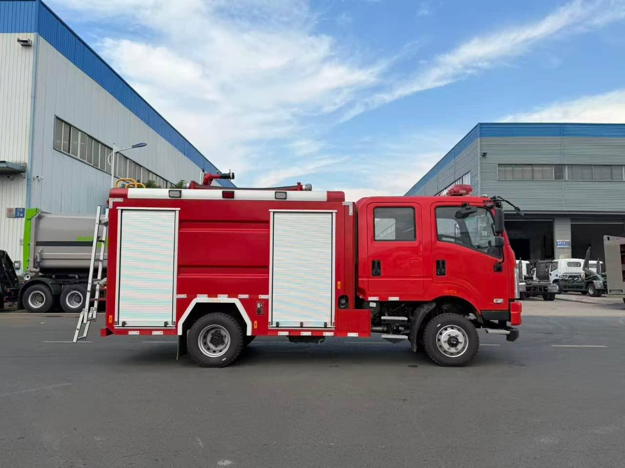 【上装配置】原装双排驾驶室,总容积4立方,采用优质碳钢钢板制作,内做防腐处理,配备CB10/30型茸申消防泵,PS8/30型消防炮,全功率夹心取力器,长排警灯,喊话器,爆闪灯,后照明灯,操作面板采用中文标识,车顶简易梯架,适用于城市应急管理部门,森林消防等。