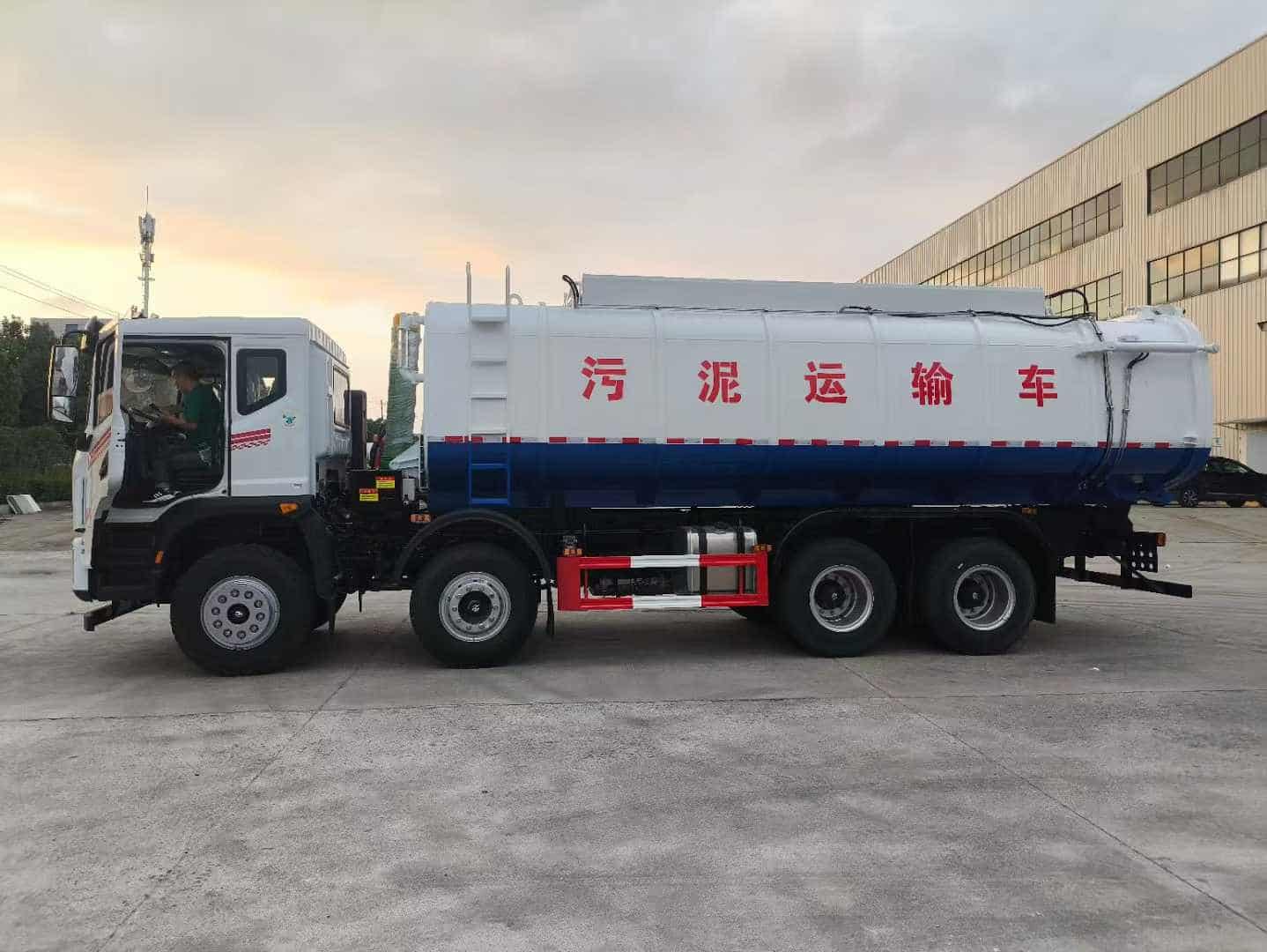 2、罐体采用武钢Q235优质钢板制作,主要用来盛放液态污泥,罐体采用方形罐体设计,密封性好,强度高,可有杜绝液压污物溢出的特点; 3、进料口2个,可液压开启,主要用来装液态污物,进料口盖板设有密封圈,可有效的防止污物及异味的散出;4、罐体后端设有卸料蝶阀,可分别通过气控及手动控制,紧急情况下可采用手动卸料,方便快捷。 可选装后盖液压开启,方便快捷。