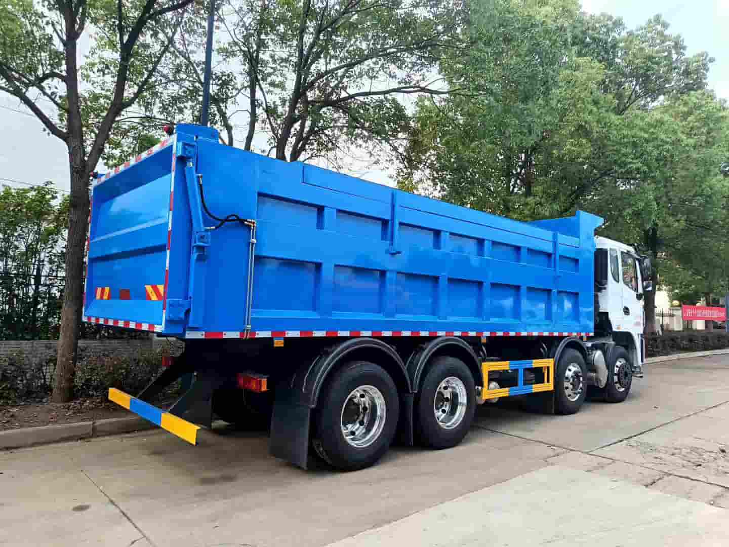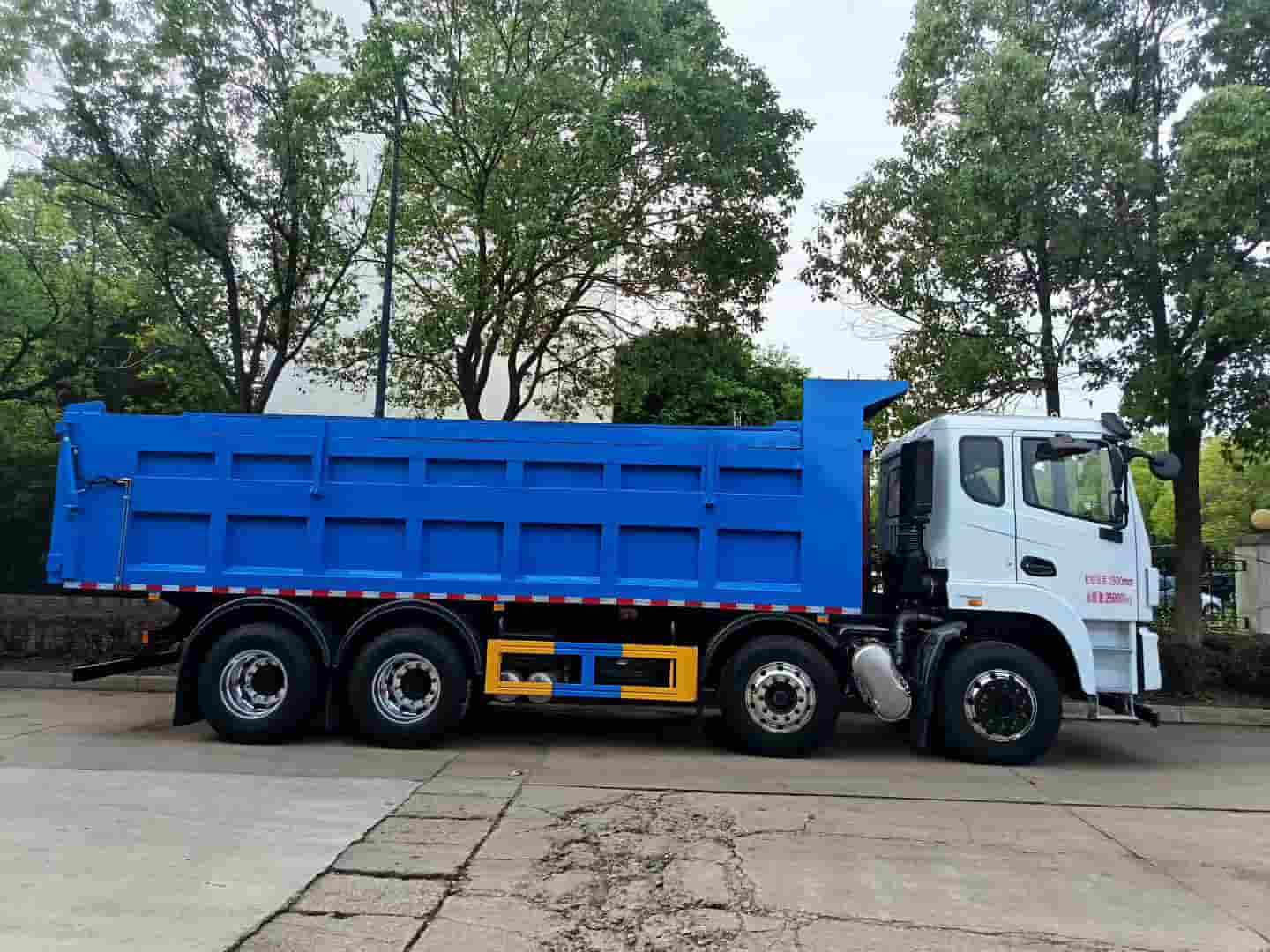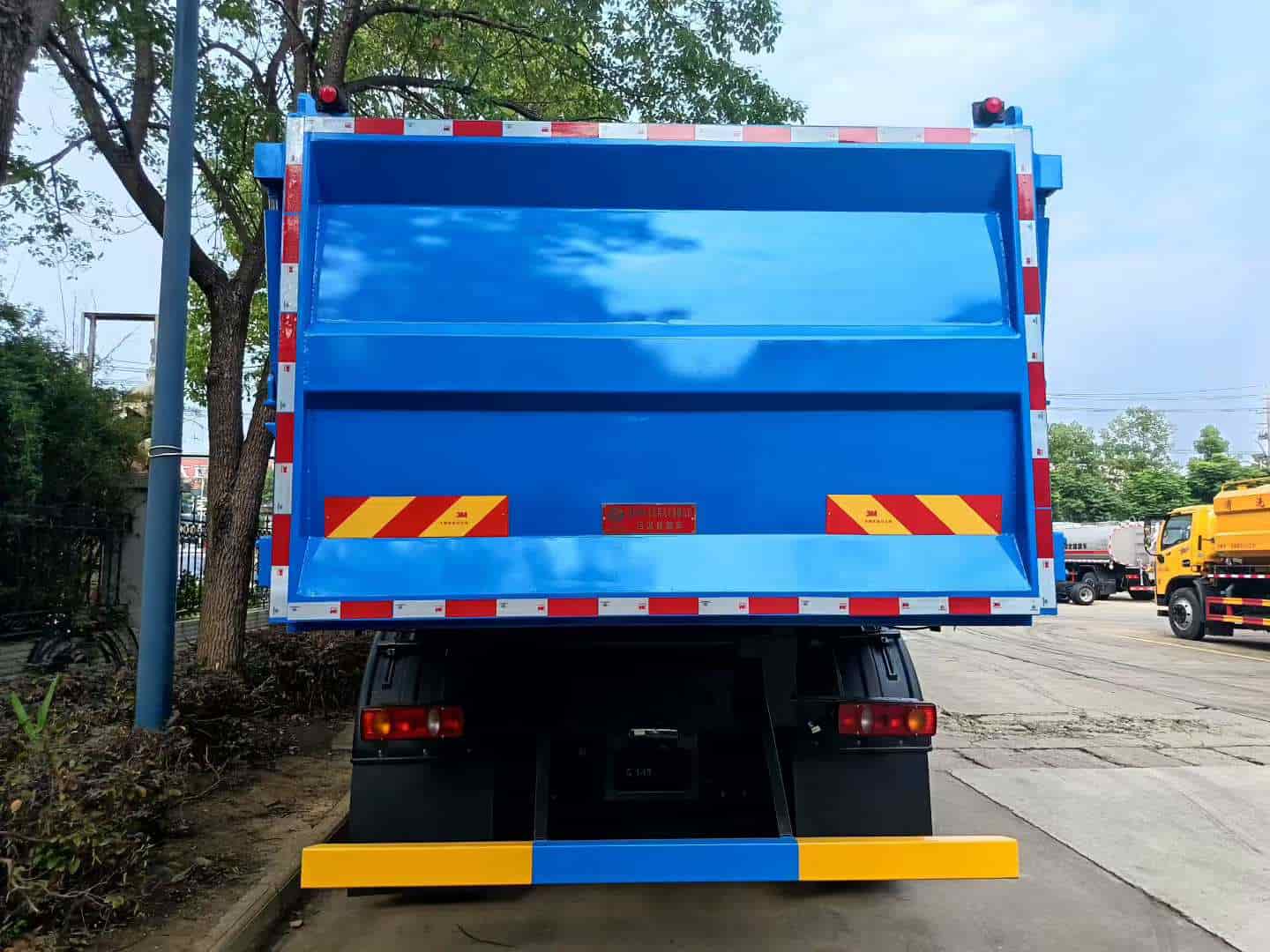 上装配置:厢体容积约:23立方,边4mm底5mm钢板,前置油缸自卸,顶盖翼展,后门液压锁紧,带橡胶密封条,尾部加装液压锁紧,内部加横梁拉紧,左、右下角自箱体内前端至尾部满焊150×150mm三角铁,边灯带线,箱体密封不漏液,驾驶室内外操作。