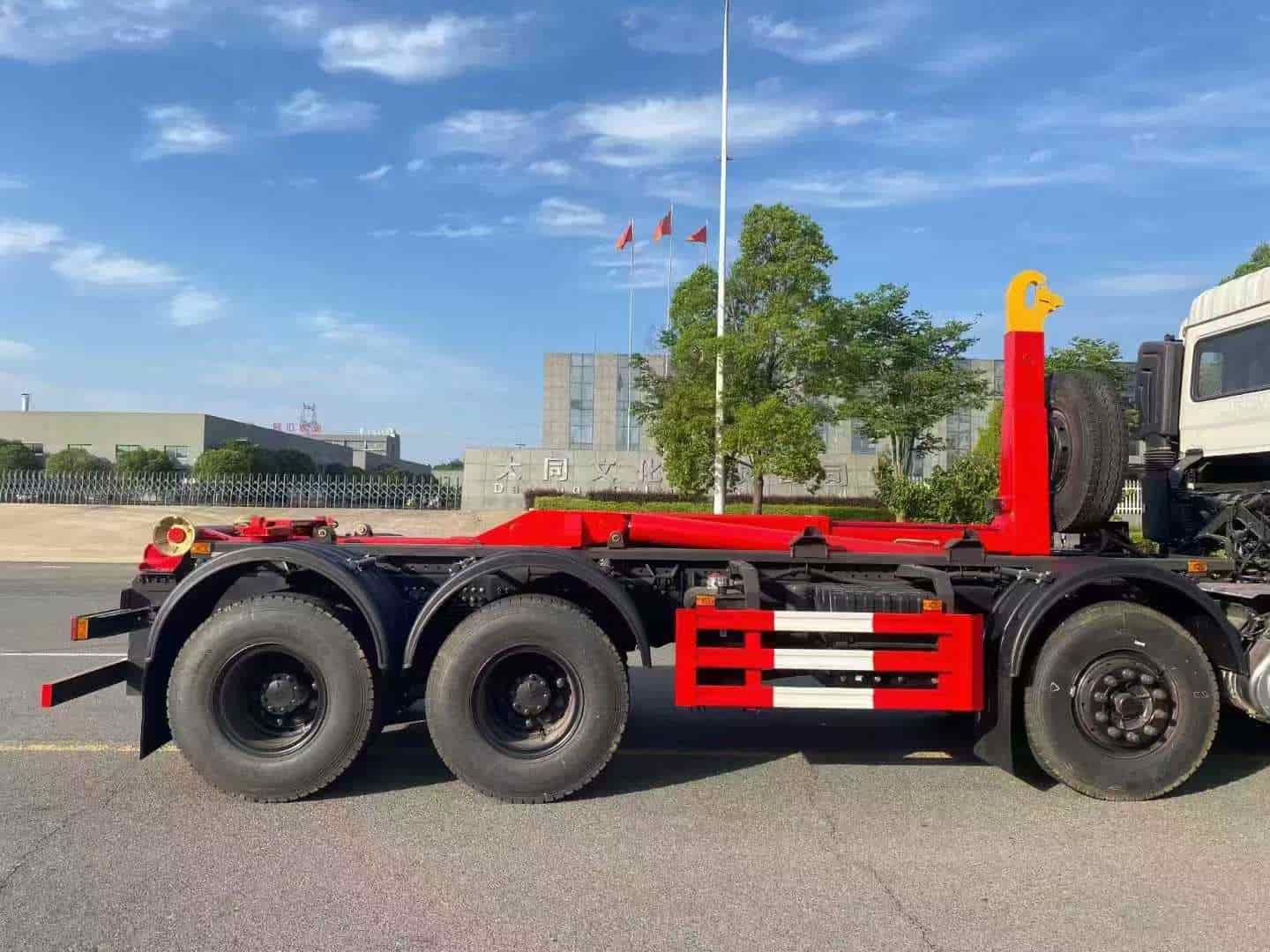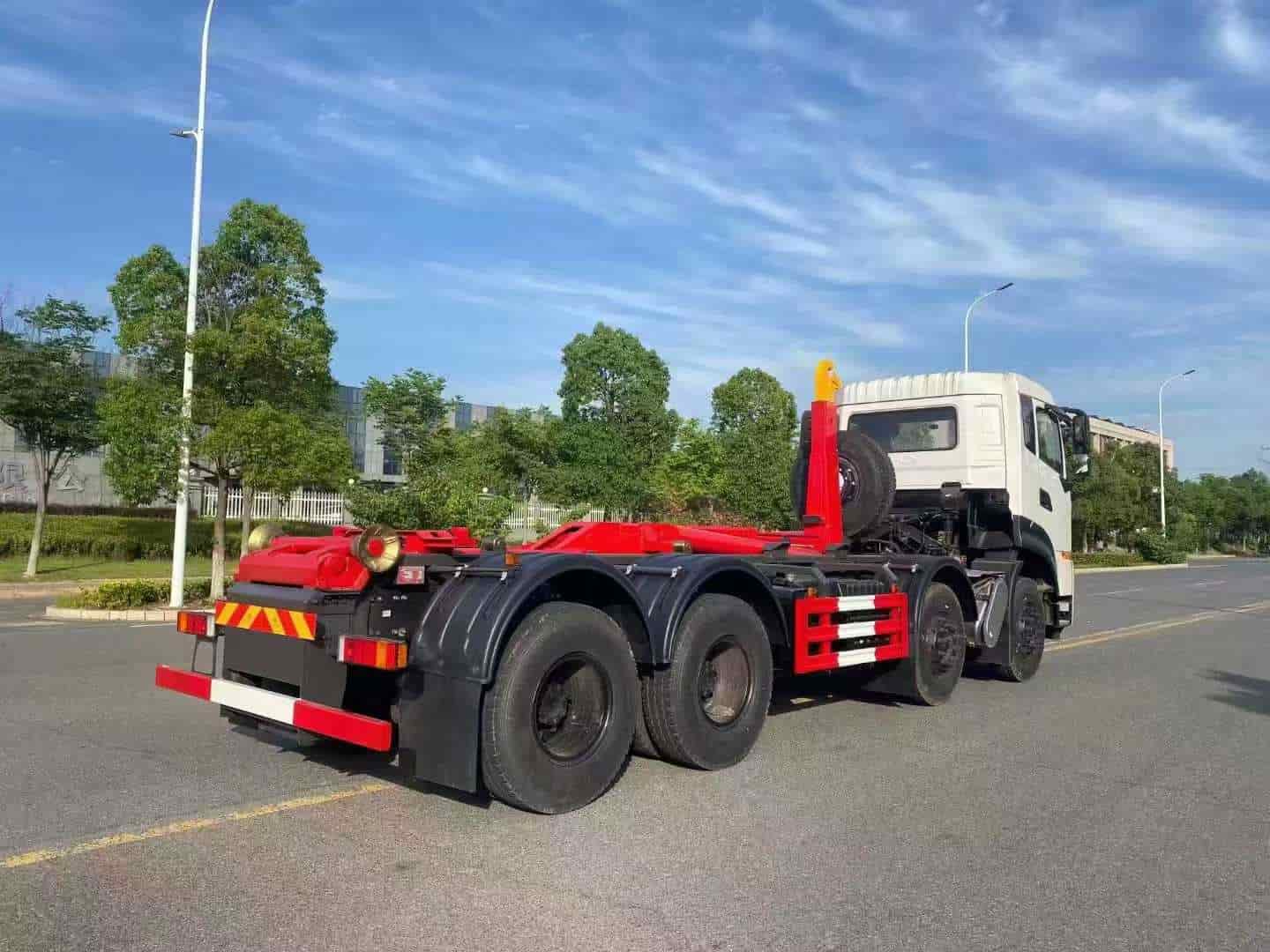 龙擎350马力,伸缩大臂,加强后支腿,横向锁紧装置,搭配移动压缩垃圾箱使用。