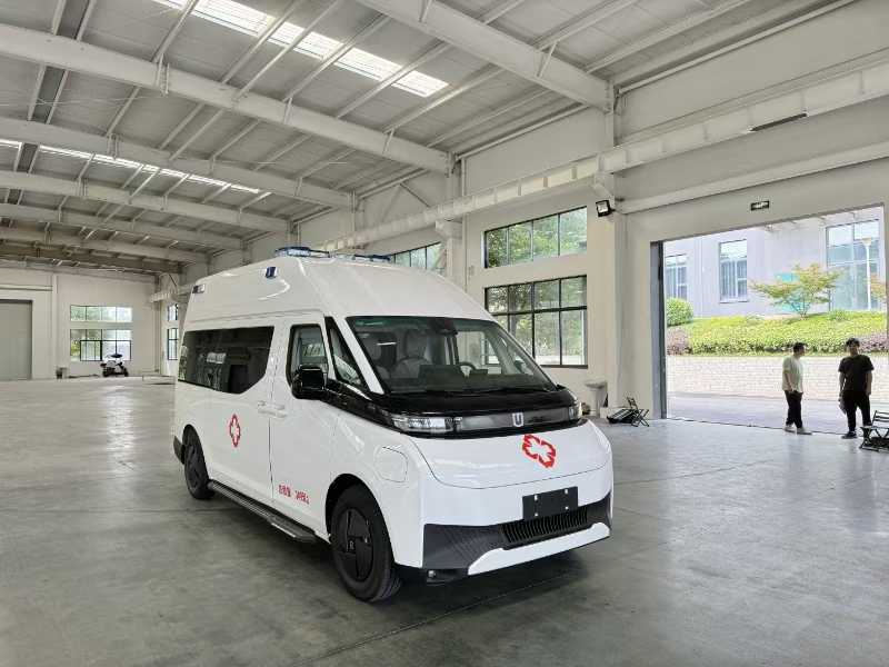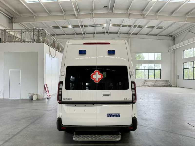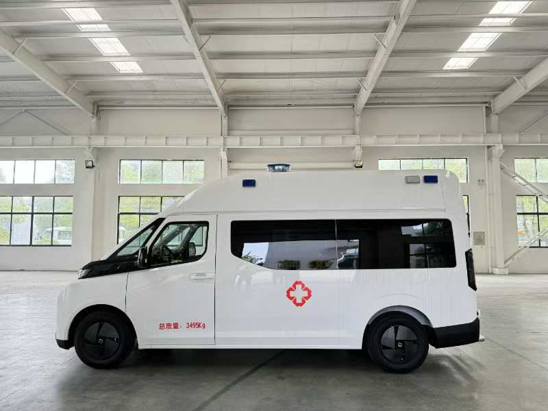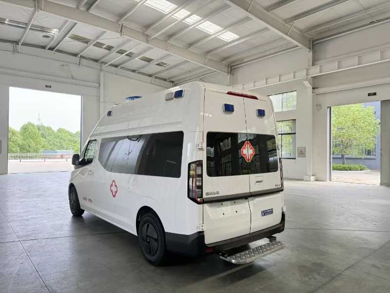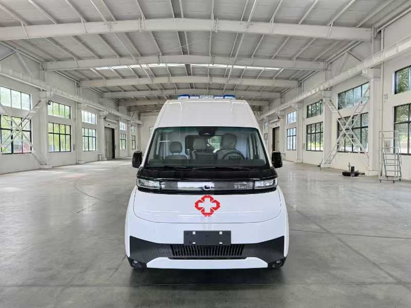 吉利远程超级VAN纯电动救护车,电池容量66kWh,续航340KM,5490,5700*1980,2040*2610,最高车速135km/h,6-8人,现车