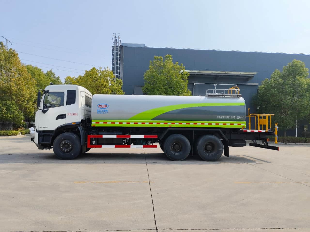 【上装配置】19-20立方米,罐体5mm厚,封头5mm,国标板材,前冲,后洒,侧喷,后尾部高炮可调节柱状雨状,60-90洒水泵,泵进泵出,带一个60消防接头,控制前对冲与左右后洒,两根罐体等长的吸水管、两道防浪板、后加大工作平台。