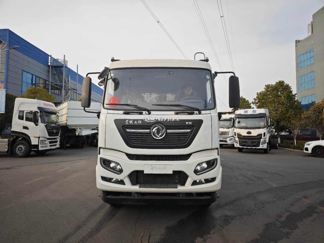 东风天锦旗舰版底盘,1995+4000+1350(mm)轴距,康机320马力,前桥4.5T×2/后桥11T×2, 11R22.5 18PR轮胎,陕齿10档变速箱,东风原厂空调,280L铝合金大油箱 、遥控钥匙、中控门锁、电动玻璃、气囊座椅,行驶记录仪