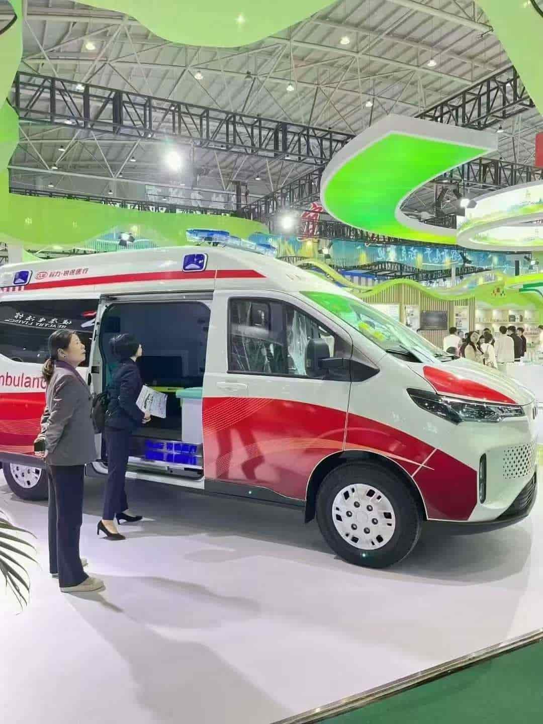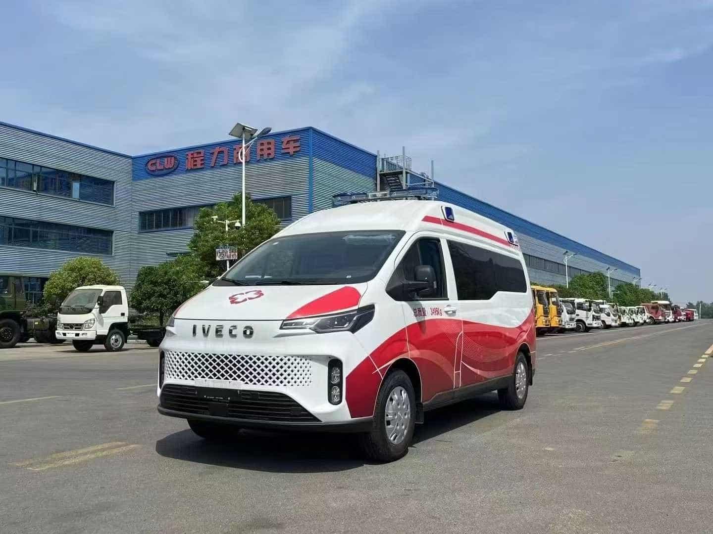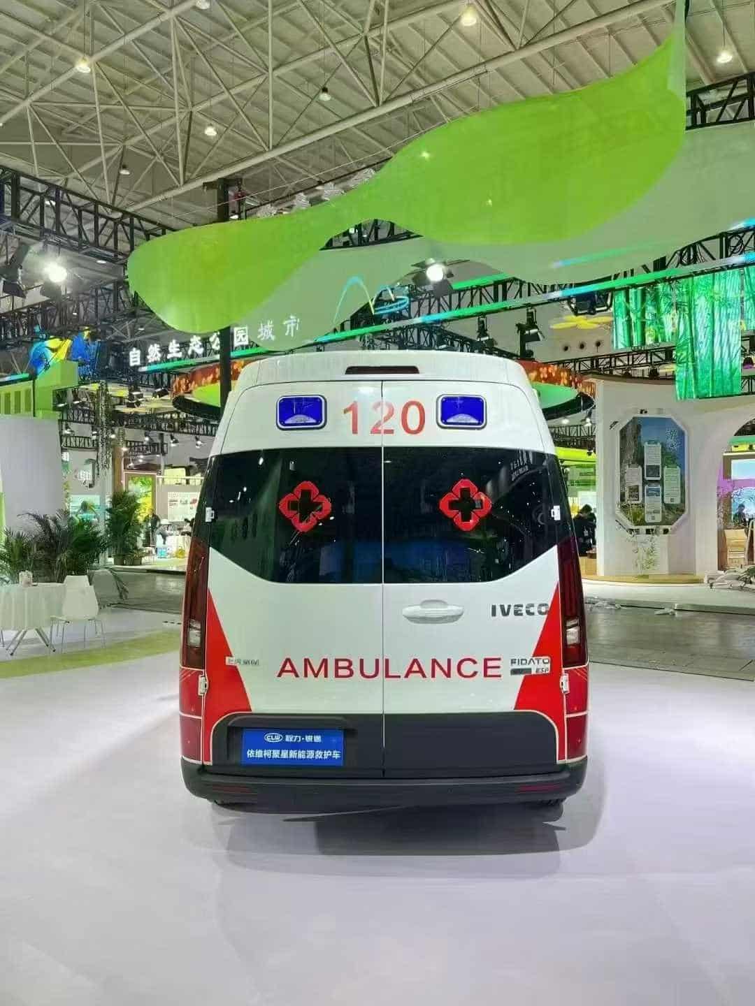 出口可定制右驾。依维柯聚星纯电救护车,88.8度电,续航420公里。支持出口、出口、出口,车载大屏可定制中文、英文、法语三种语言。