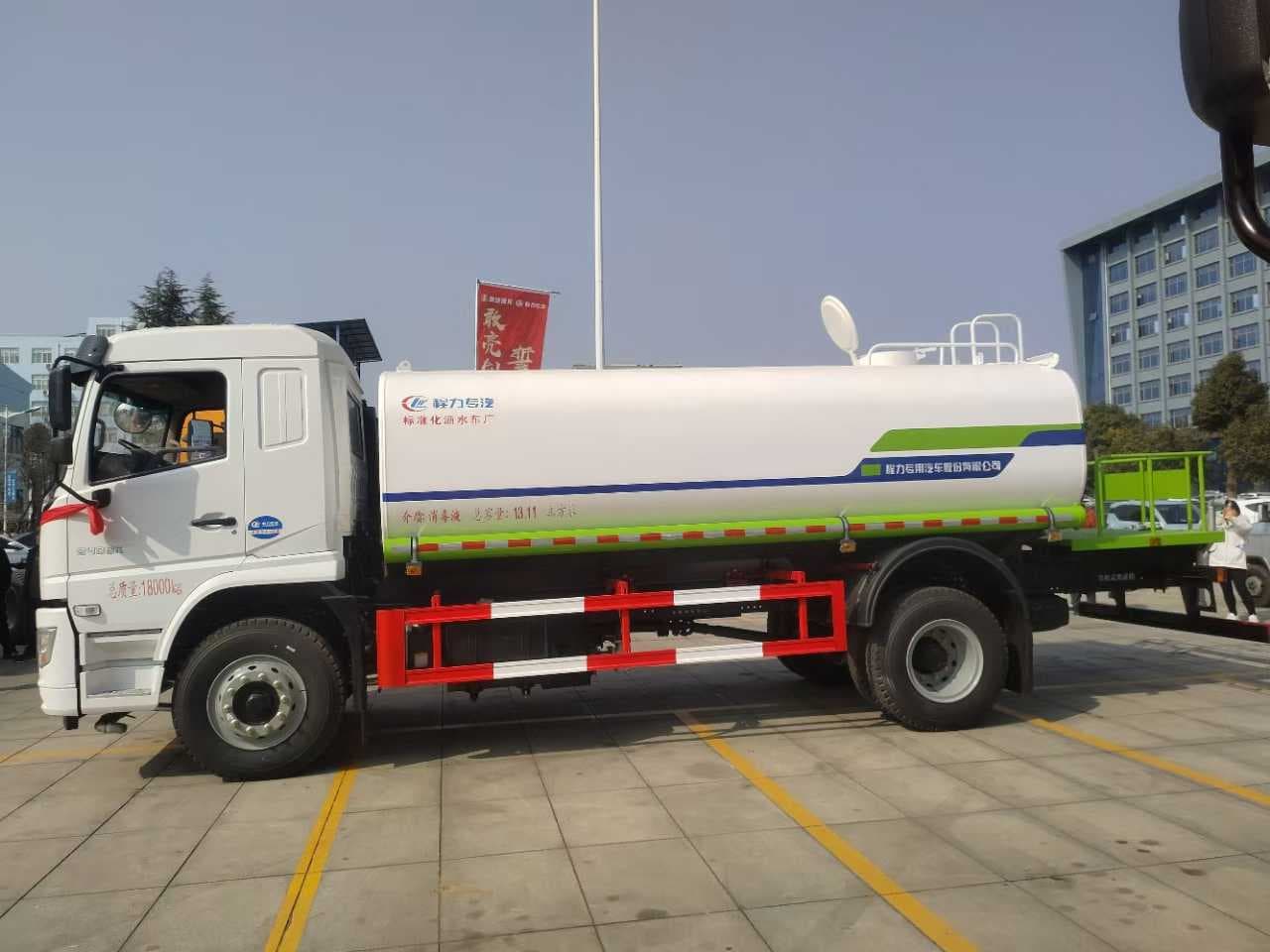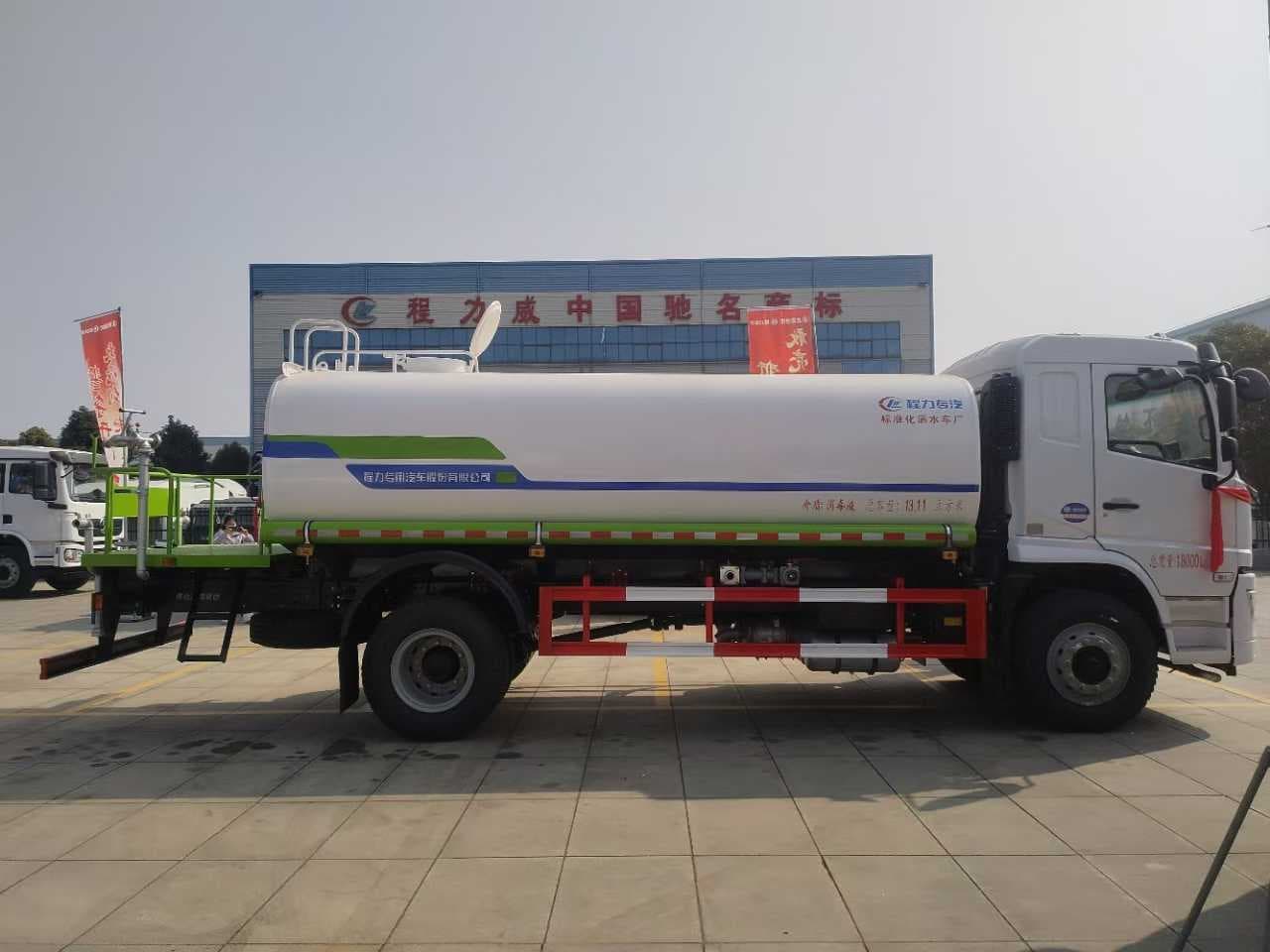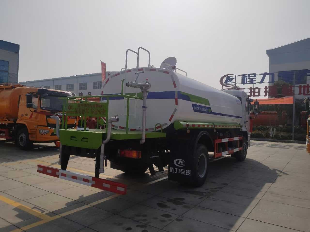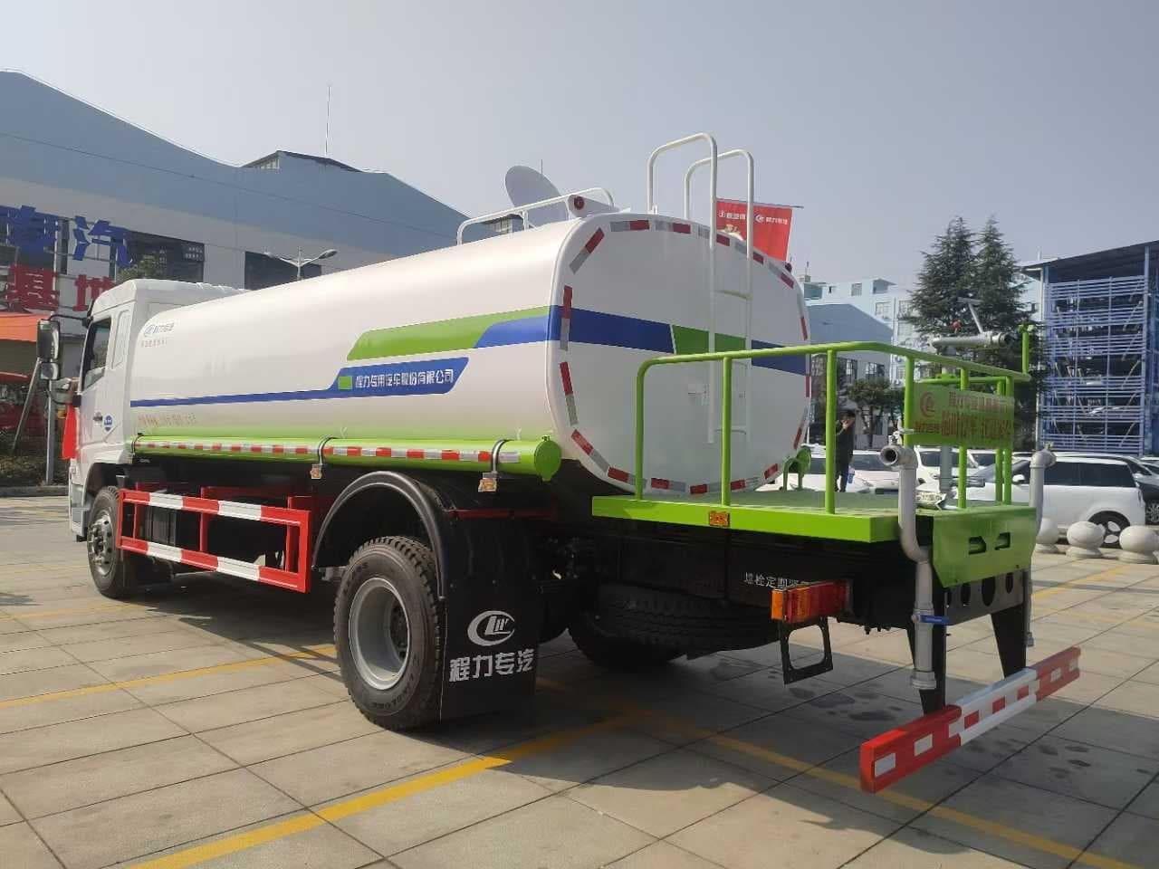 【上装配置】14.7立方米,罐体4mm厚,封头4mm,前冲,后洒,侧喷,后尾部高炮可调节柱状雨状,60-90洒水泵,泵进泵出,带一个60消防接头,控制前对冲与左右后洒,两根罐体等长的吸水管、两道防浪板、后加大工作平台