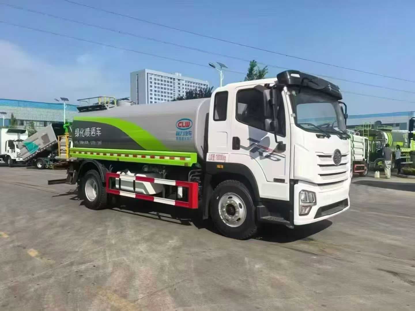 上装配置:实际容积约14.3立方,前冲(喷)后洒、带侧喷、带后工作平台、平台上安装绿化洒水高压炮,配备专用高功率洒水泵,带消防接头,带自流阀,带自吸功能,带滤网。吸程≥6米,洒水宽度≥16 米 射程≥30米。可选择前电子水炮,后置雾炮。
