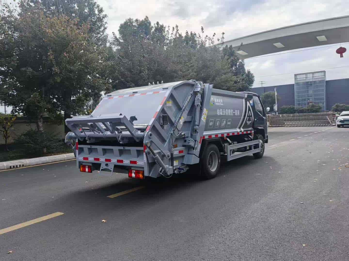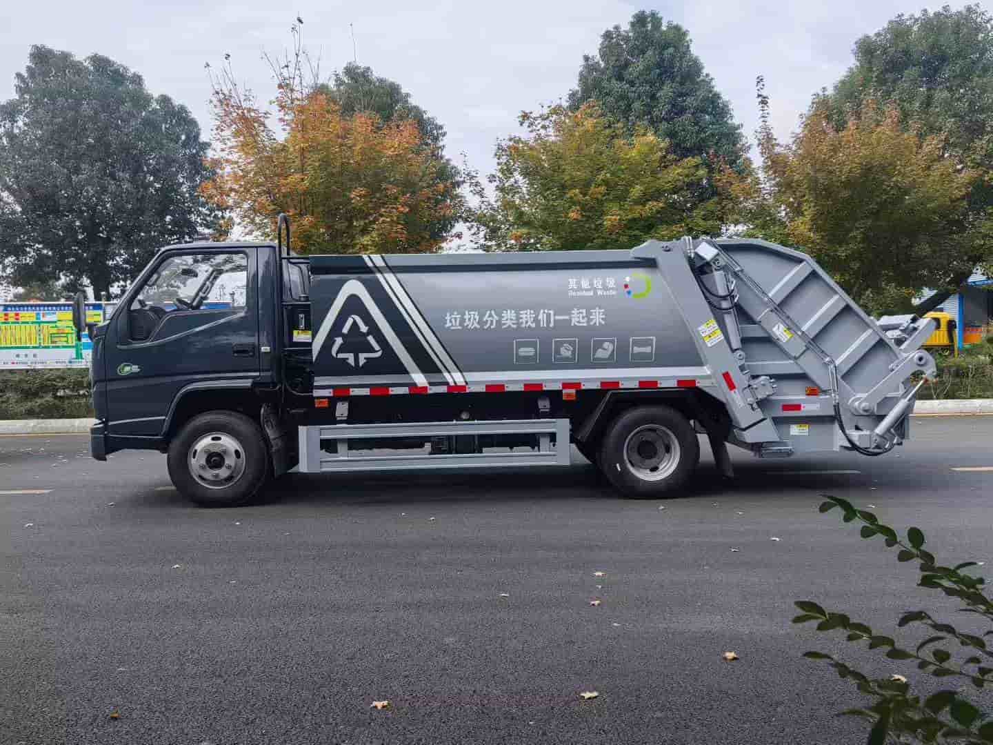 江铃115马力,可以下2米1地库,车身小巧轻便,客户加装660升挂桶夹,可以挂120升和240升,660升垃圾桶,满足各种垃圾桶收运,北京涂装