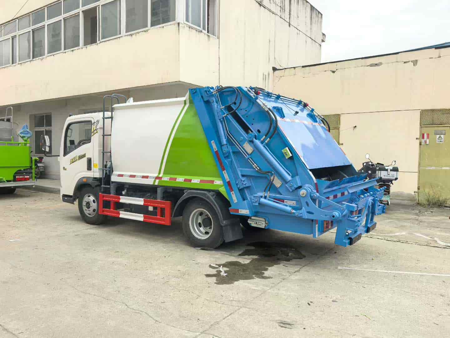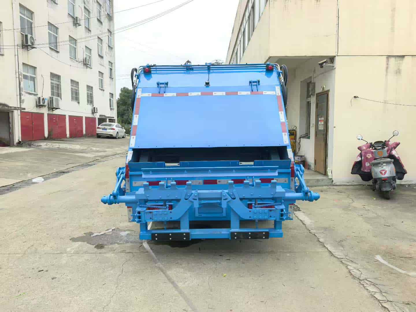 上装配置:弧形箱体,容积5.8方,箱体采用Q345锰板,边3mm底3mm,填充器采用Q710高强钢,弧形底板5mm,滑轨8mm,福建山友定制油缸,中梅多路阀,皖液油泵,填装器举升油缸带双向平衡阀,采用湖南长沙CAN总线电控系统,德国伊顿操作面板,日本川户无线遥控器(采用光电开关,带一键操作、手动操作和无线遥控三种控制方式),操作盒共两只(驾驶室内部及后尾部右侧可操作,填充器左侧安装一个急停开关),后填装器标准下部一只污水箱,选装防尘盖/三角斗翻转机构,其余按公司标准配置制作。