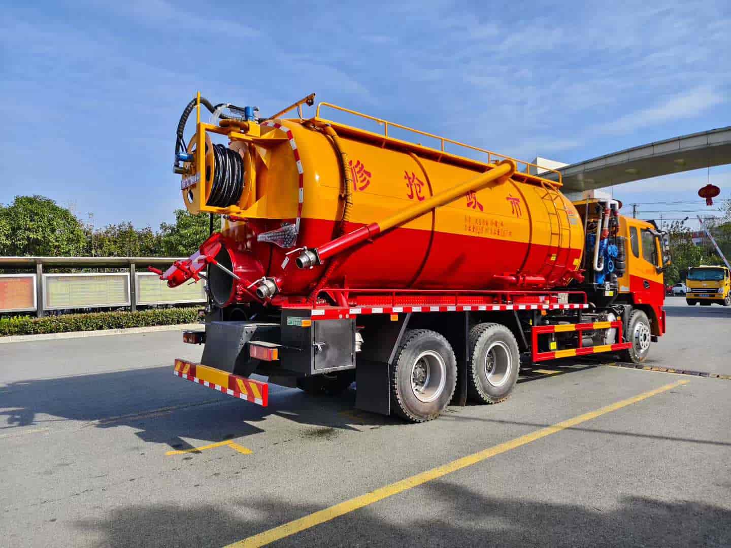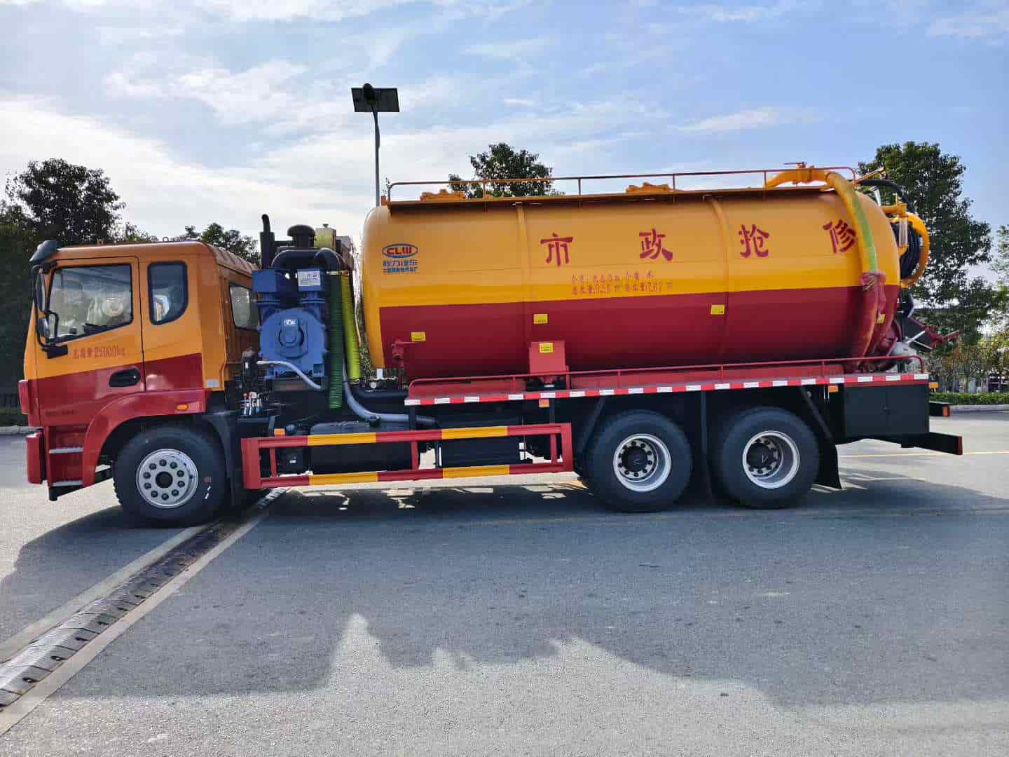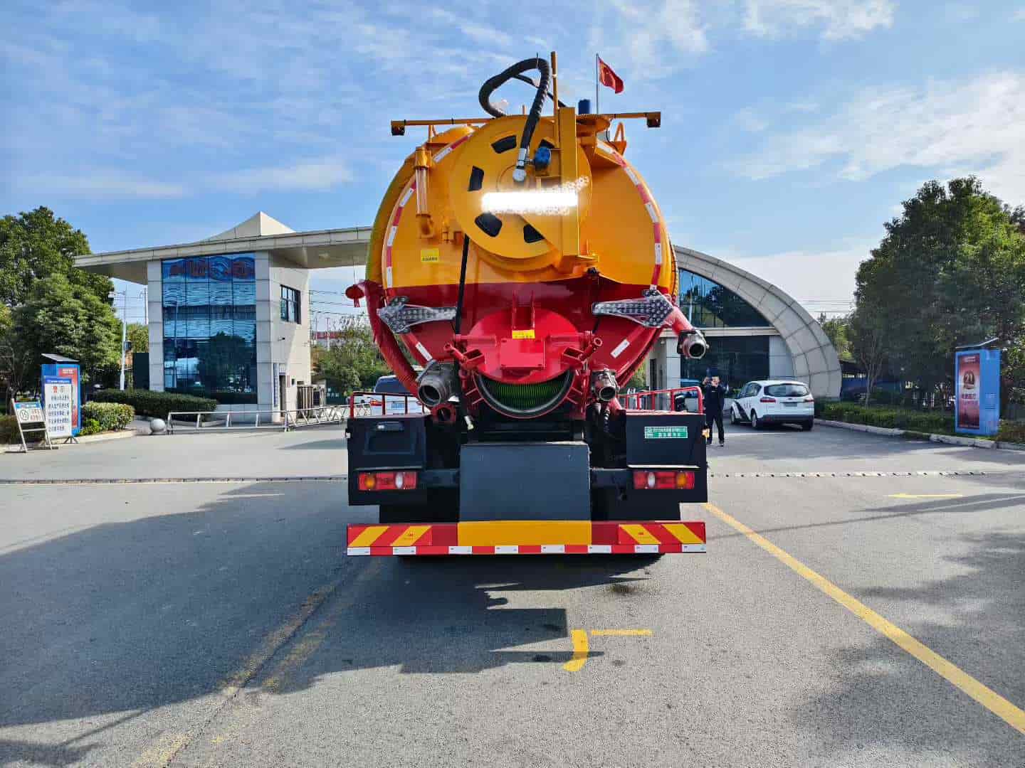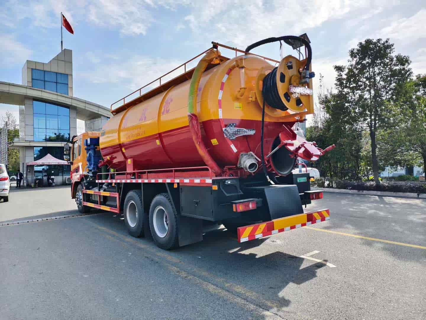 上装配置:罐体容积约22方,8m碳钢板材,清水约5方,其余为吸污,两仓球阀互通。两仓中间用封头,品浮350流量高压清洗泵,配100米高压管。选装安装山东258水环泵配420马力副发,配8mm厚方管加强底座。卷盘装后封头180度旋转,后封头液压打开。后封头上一个600水泥盖放污,可液压开启,侧面一个6寸偷排阀,后封头一个6寸出口,一个100寸进口直通罐顶,罐内铺不锈钢板,8mm厚方管加强型车架,自卸车设计,罐体尾部箭头灯,带一个视污窗口。带8米吸污管。其余厂内标配!