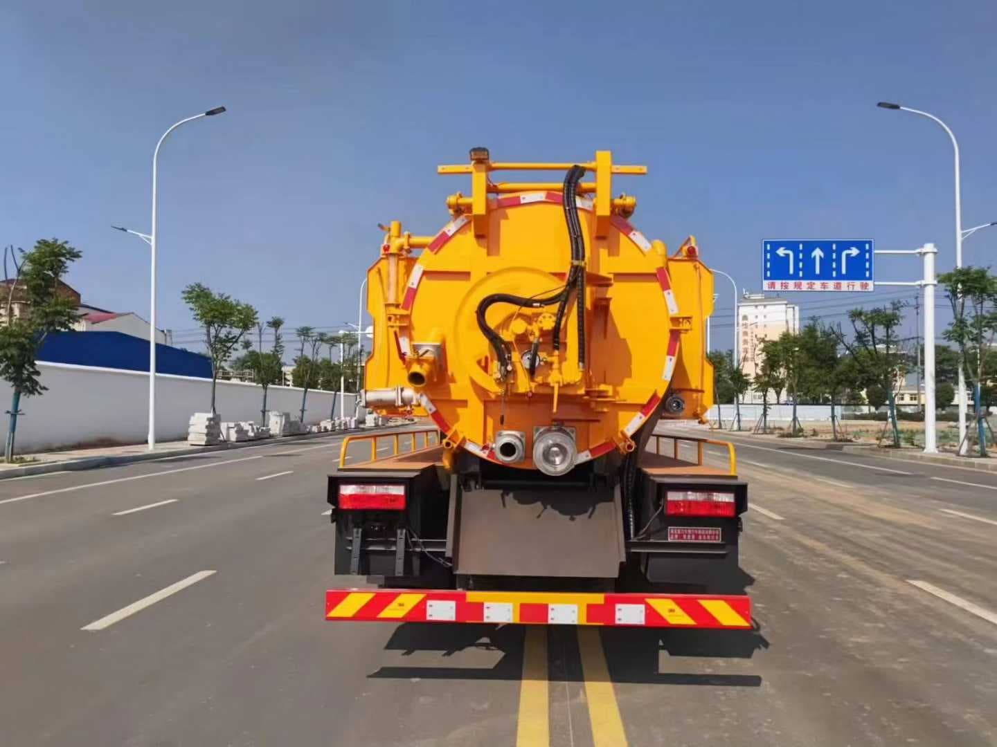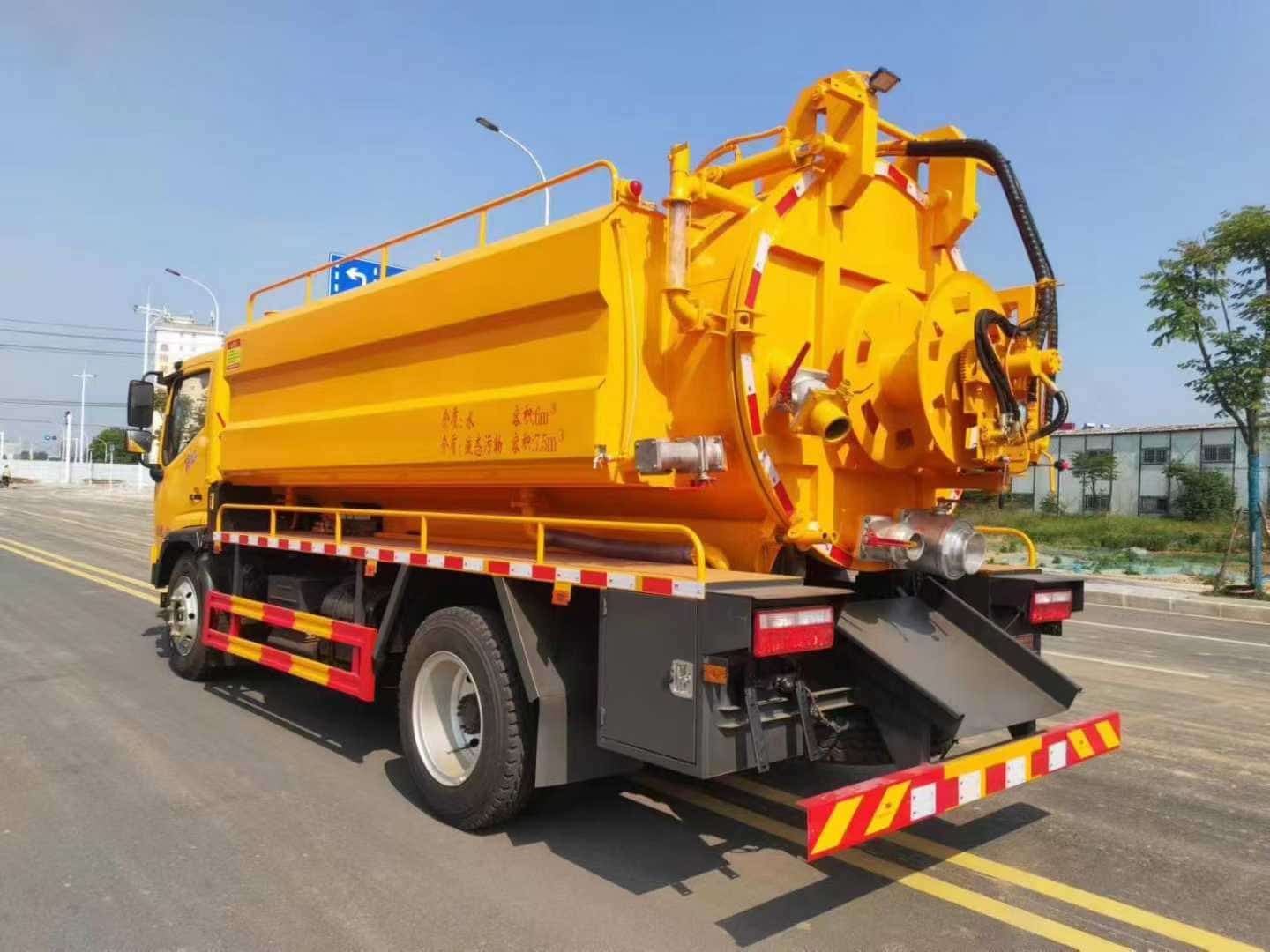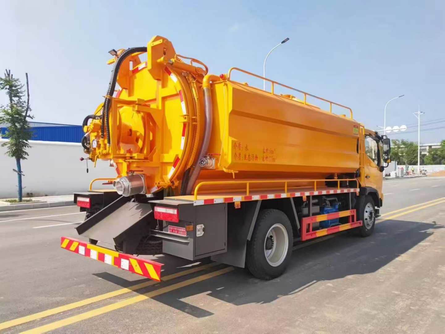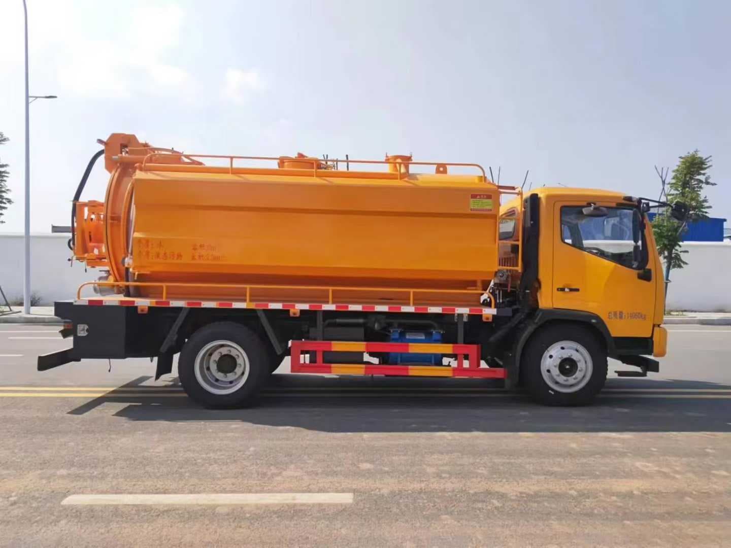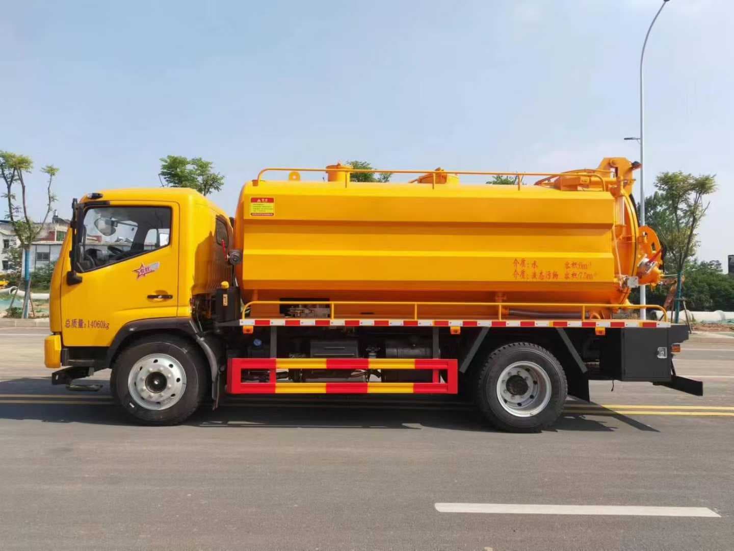 上装配置:罐体采用6mm钢板制作,实际容积约:8.9方污水罐+4方清水罐,污水罐和清水箱带互通功能,罐体液压下置顶举升自卸,高压泵采用力神215大泵 ,配备高压卷盘,带60米的高压管,