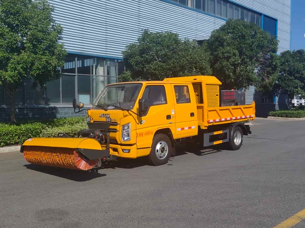 加装配置:2.5米整体避障除雪铲(适用于城市路面),2米自带动力除雪滚刷。