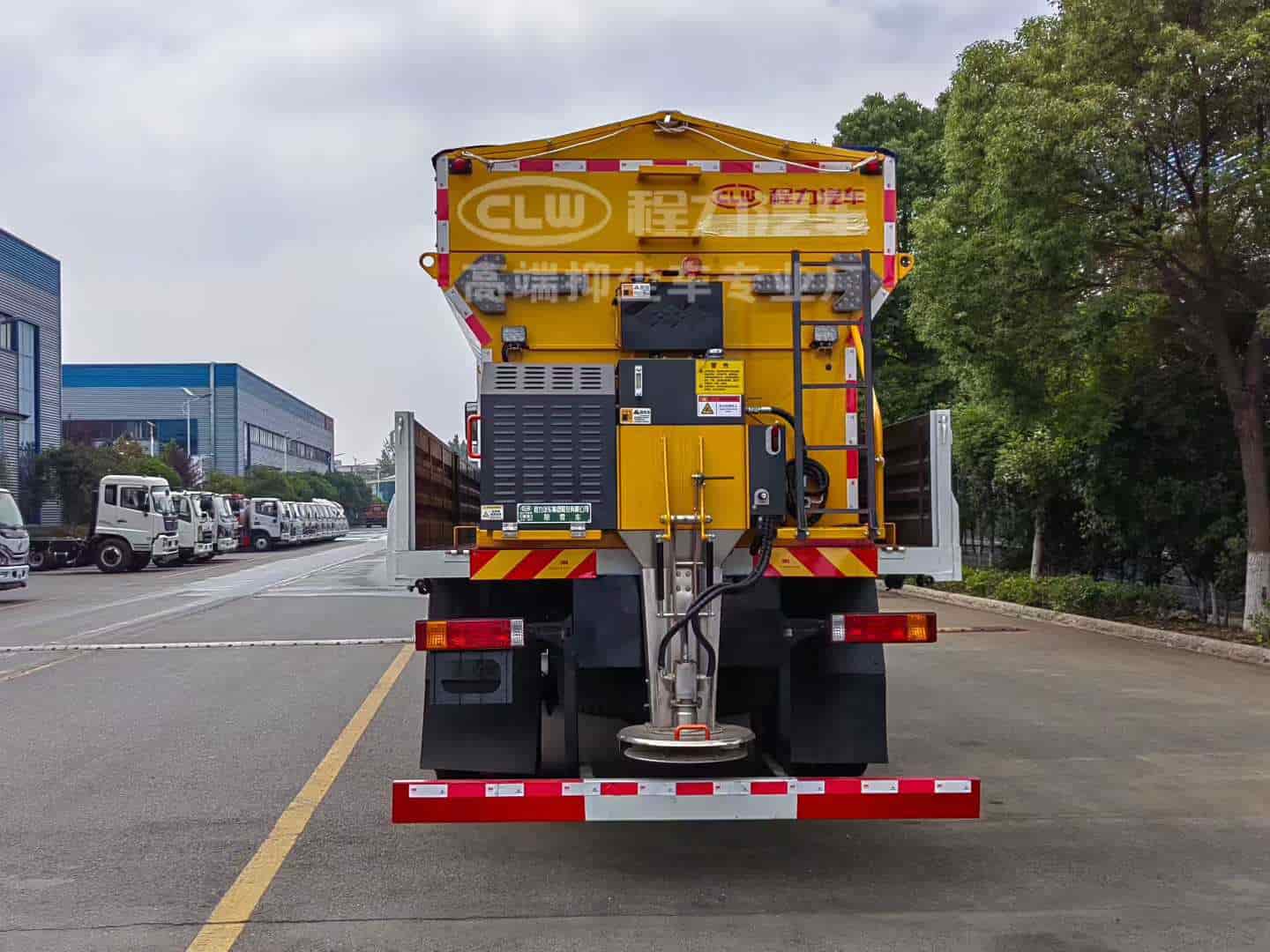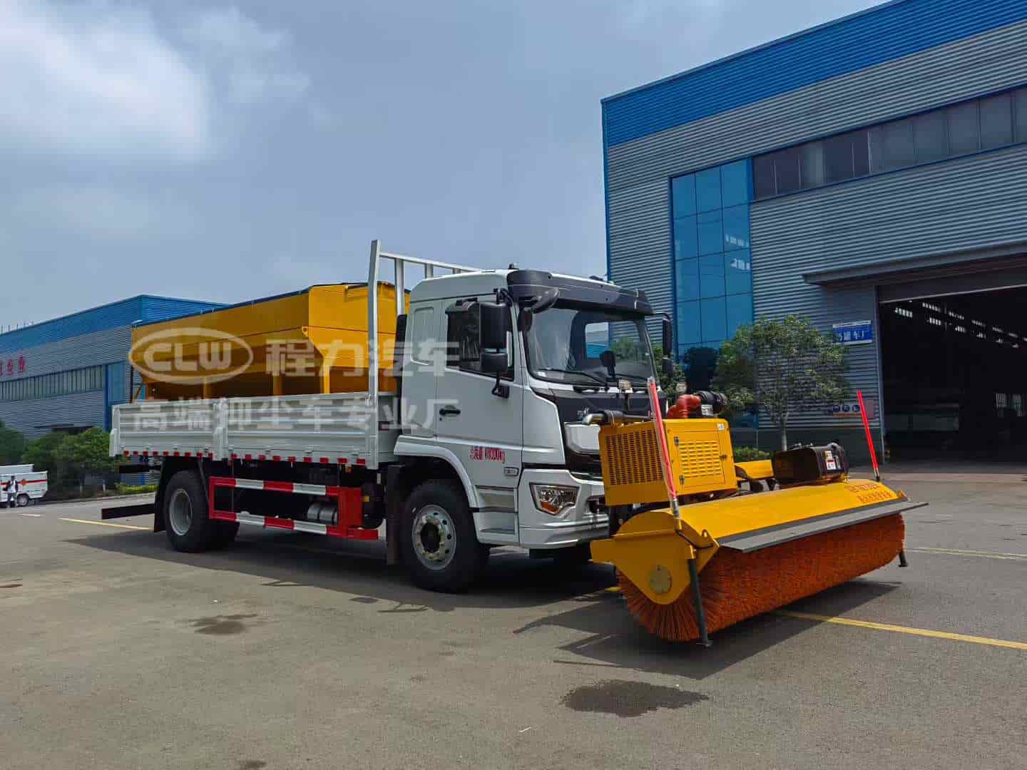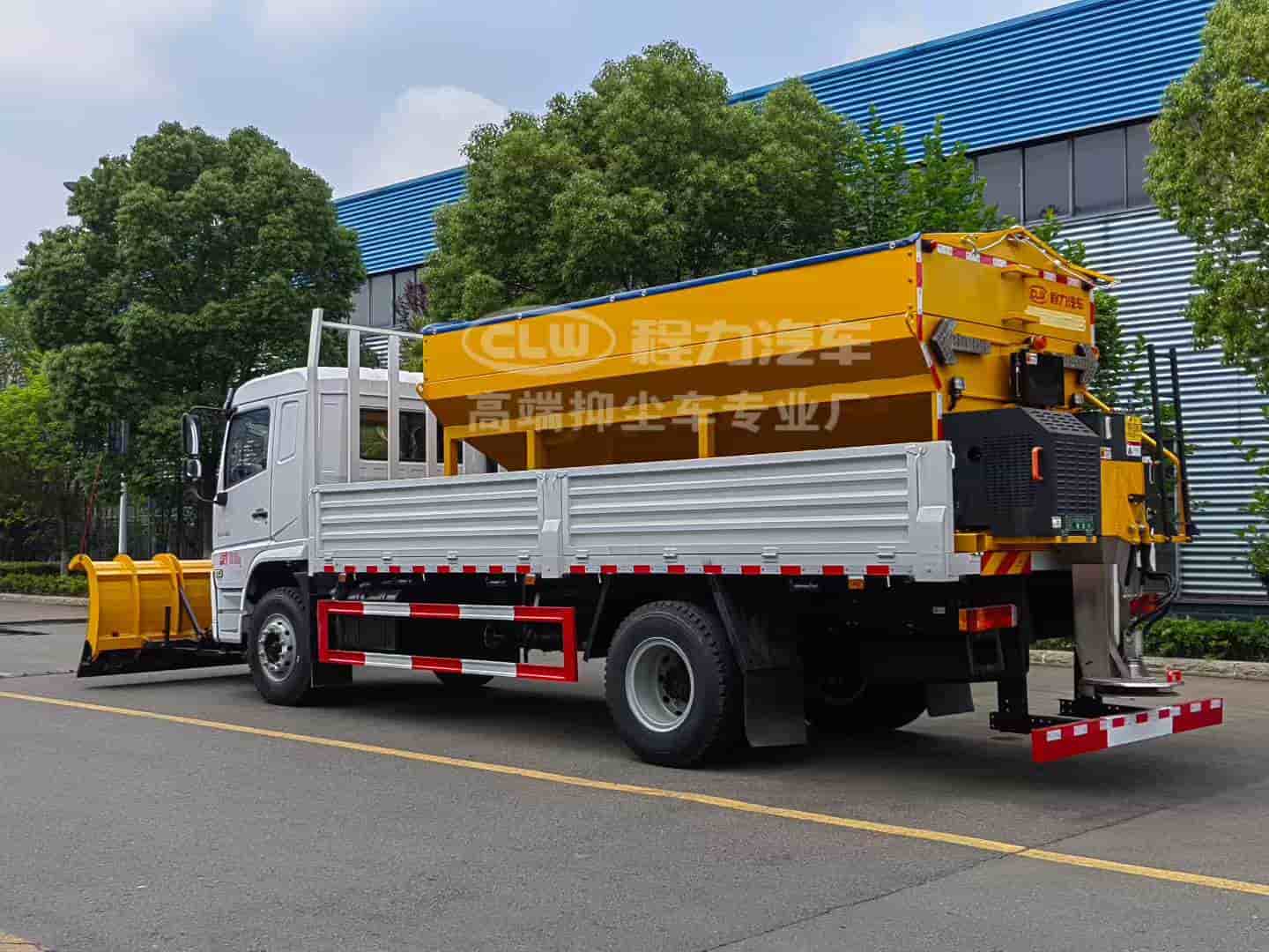 上装配置:普通载货型货箱,配备10立方融雪机,独立柴油动力,刮板链条输送方式,采用V型料仓,顶部带防雨罩,折叠式不锈钢撒布盘,采用集成按键线控式驾驶室操作模式。