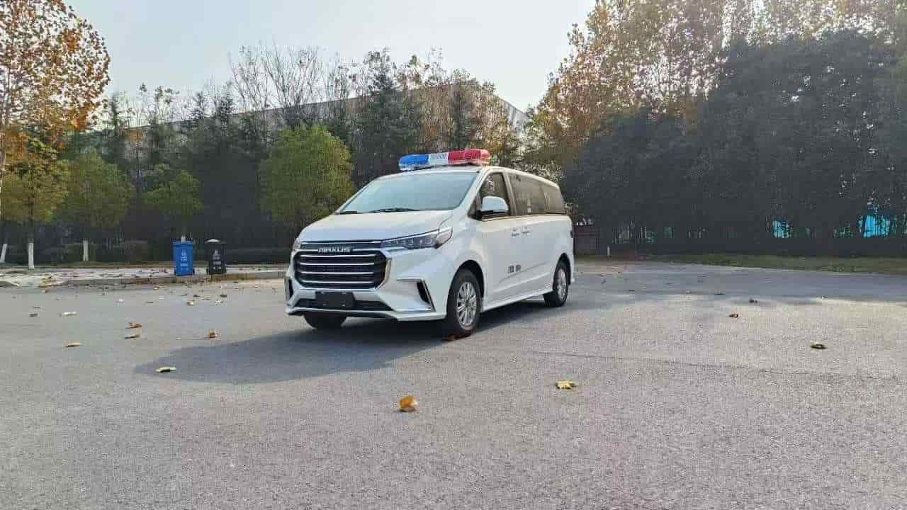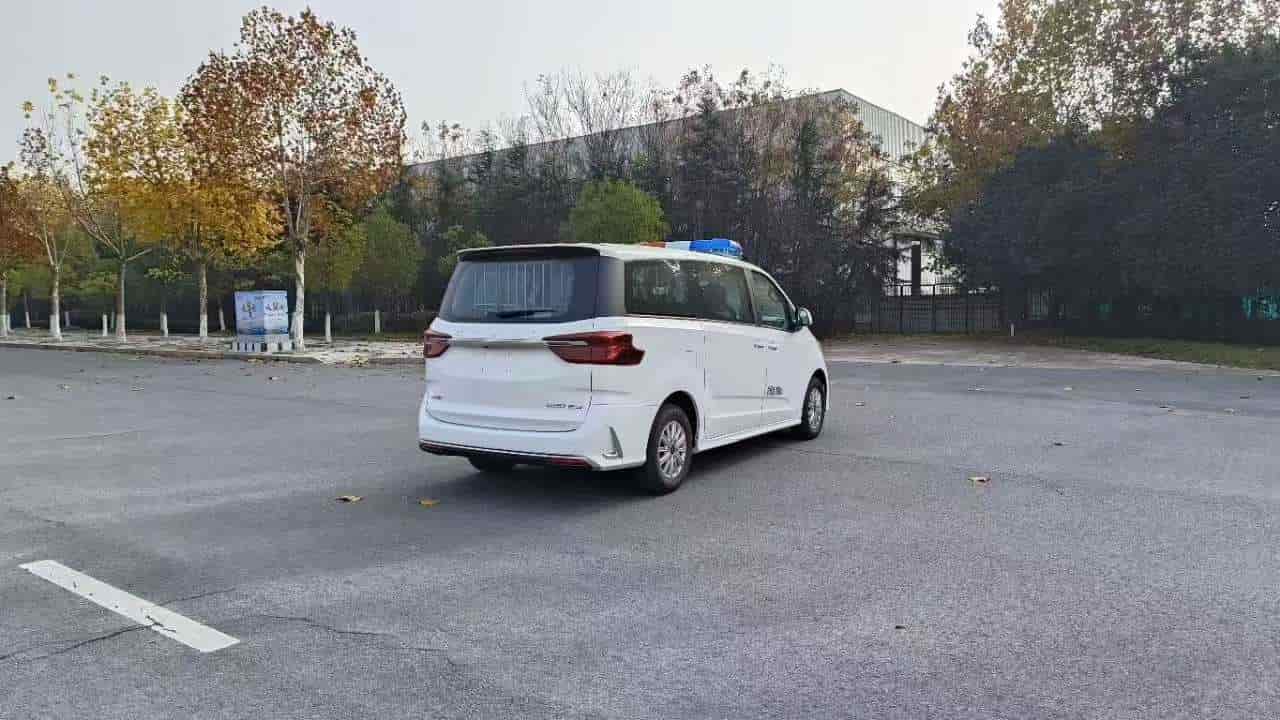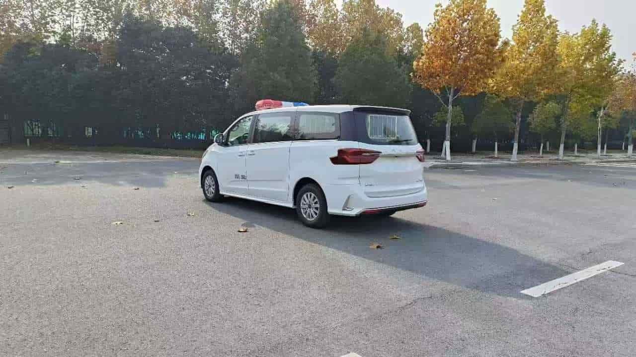 囚车系统:长条警灯及喊话器,车身两侧及尾部红蓝爆闪灯;