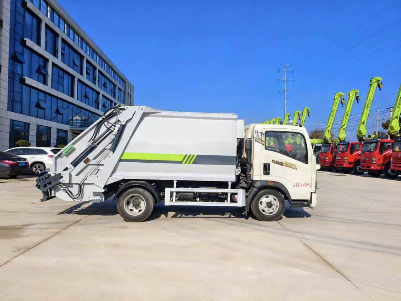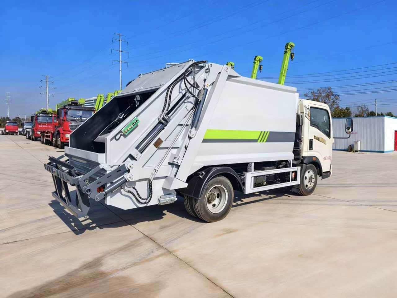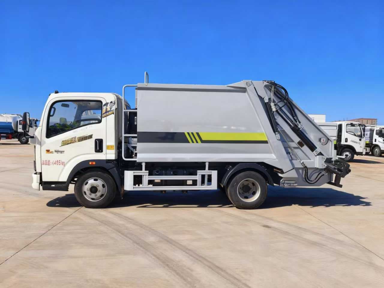 上装配置:全新第5代新款箱体,箱体容积约6.5方,箱体采用T700优质高强度钢板制作,外方内圆箱体,所有配件采用知名品牌,英国DLI密封圈,江苏油缸,中梅多路阀,多种涂装样式可选。标配无线遥控操作更方便。