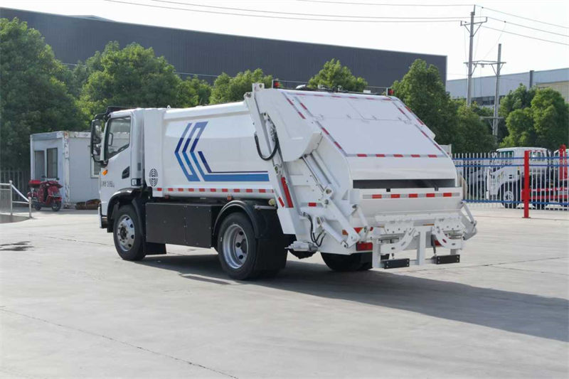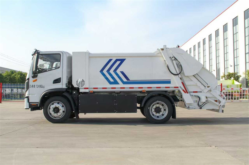 上装配置:箱体容积9方,填料器污水箱容积:220L;侧置副污水箱容积:240L,填料器容积: 780L;垃圾箱、填料器、推铲采用不低于Q700高强钢材料;适配标准垃圾桶类型:120L单桶/120L 双桶/240L单桶/240L双桶/660L单桶;