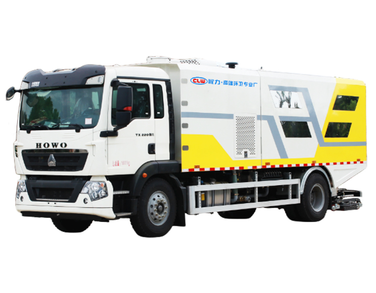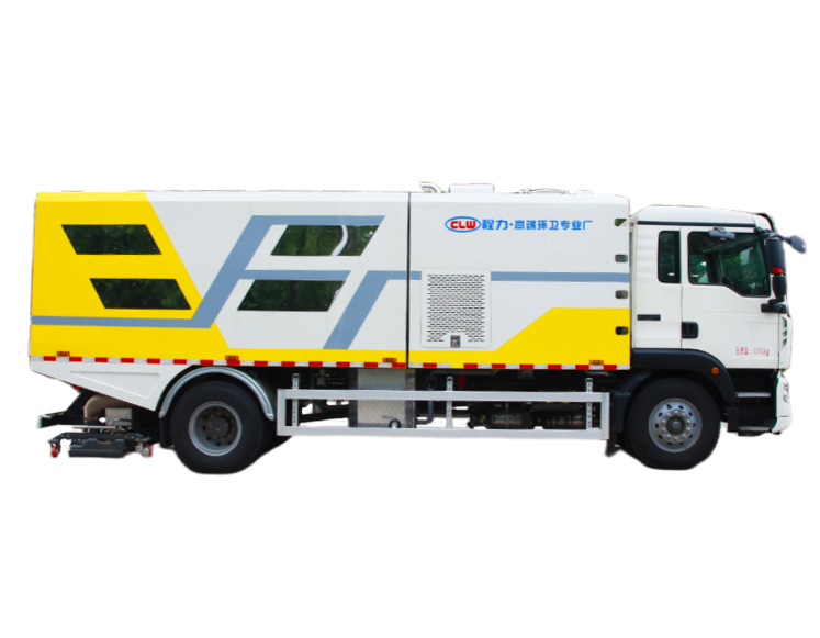 清水箱和垃圾箱分体布置,有效空间利用最大化,一次连续作业时间长。同时在作业过程中可通过污水排放装置对污水进行排放,还可随时增灌清水继续作业:垃圾箱采用双油缸自卸卸料,同时箱内设有大流量高压喷嘴,可快速冲洗垃圾箱。