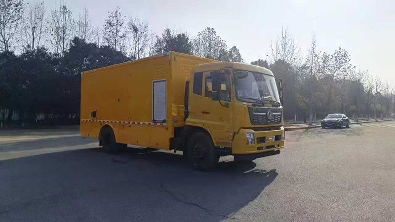 底盘采用天锦230马力康明斯发动机、4700轴距,上装:可选配国三玉柴300KW发电机组。