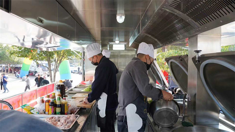 是指用于制作膳食的厢式"特种汽车"。设有灶具、供水系统、食物储存装置、通风和安全防火等设施。一般按用途分为三种类型:固定式炊事车,可长期制作日常膳食。快餐式炊事车,为集会、体育比赛、大型群众性活动等提供快速饮食服务。多用炊事车,既做膳食又兼有其他用途。
