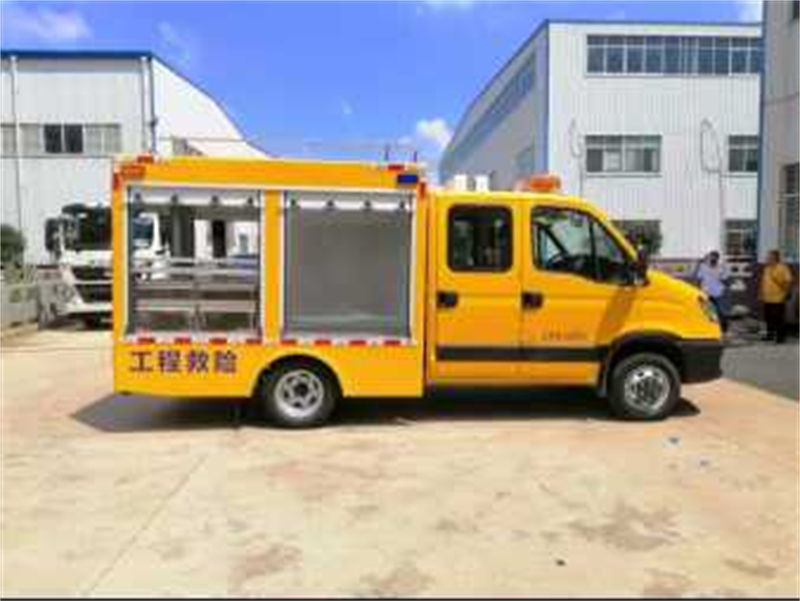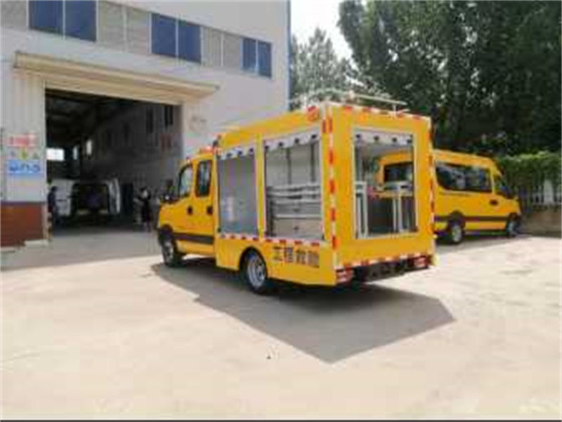 全封闭式车箱,箱体左右各安装两个铝合金卷帘门,箱体后部安装一个铝合金卷帘门,车内四周及顶部为花纹铝板,车顶行李架, 1000W纯正弦波逆变电系统,接地装置等,后舱配置多元化,