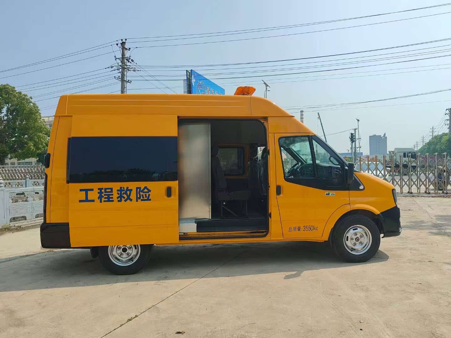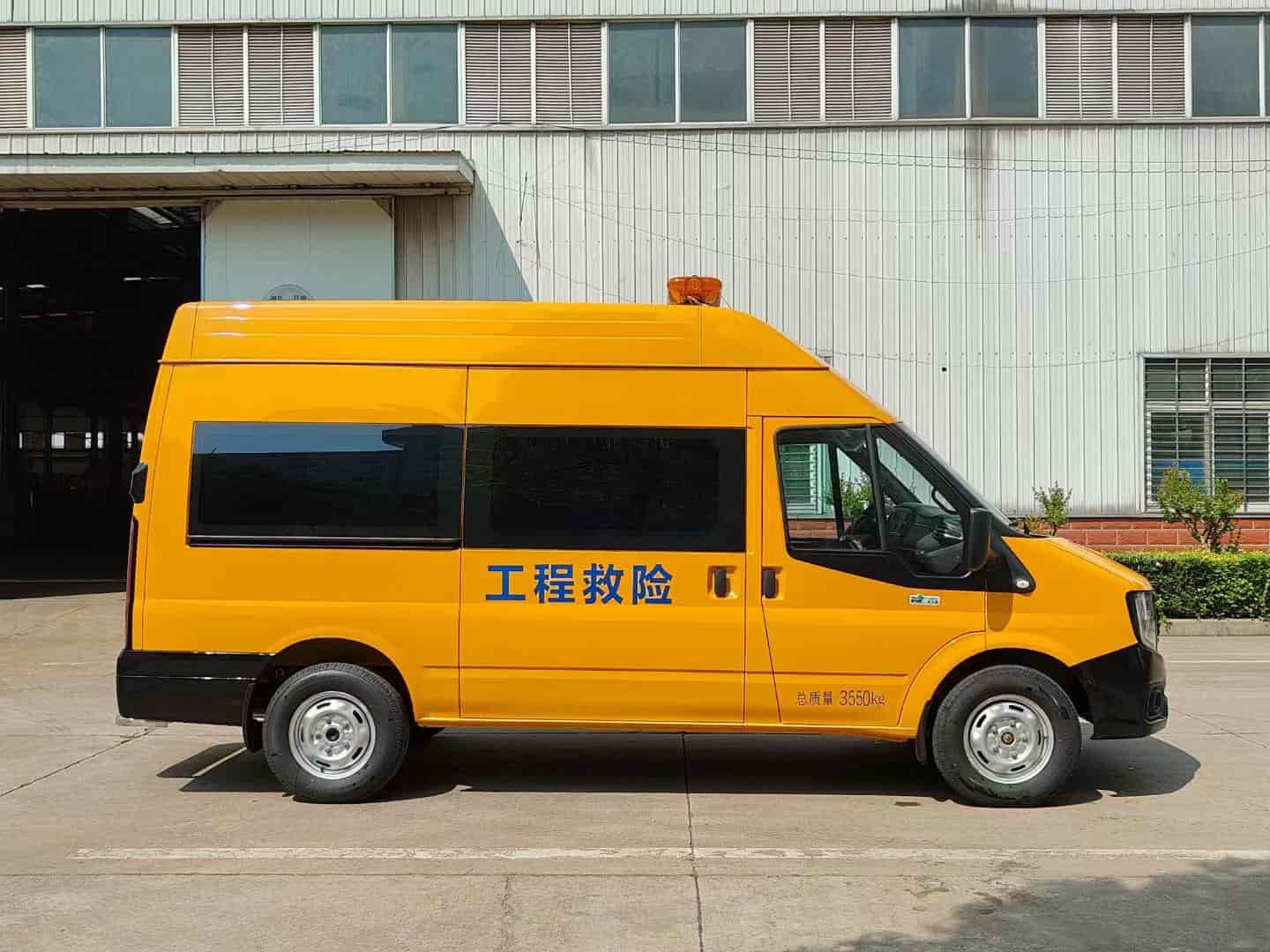 整车全金属封闭承载式车身,主驾驶安全气囊,多功能方向盘,大功率冷暖空调,前排电动车窗整车尺寸,长5695米*宽1974米*高2620米,随车可以搭载2-6个工作人员,后舱布局可以根据客户需求定制,左右两边设备柜,左边设备柜,方便客户放置各种设备及器材,舱内配备顶部照明灯,1000瓦逆变器,220伏12伏插电接口不锈钢材质,铝花纹地板,防滑耐磨,80度双开尾,操作起来更轻松。