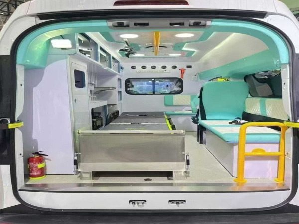 出口可定制右驾。依维柯聚星纯电救护车,88.8度电,续航420公里。