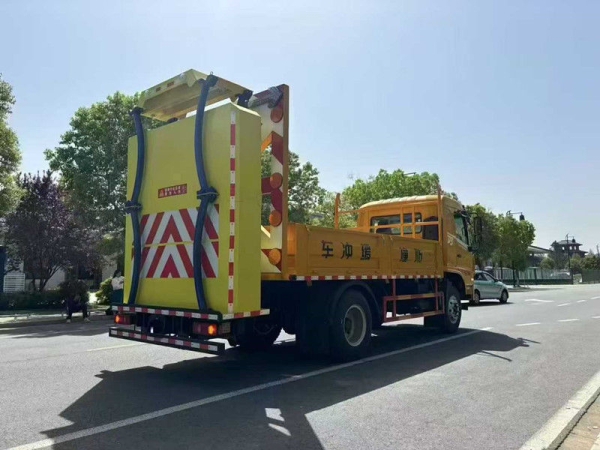 上装配100K防撞缓冲垫一级翻转,带灯架,高音喇叭,箭头灯,显示屏,货箱可以装工作用品。