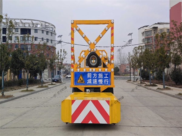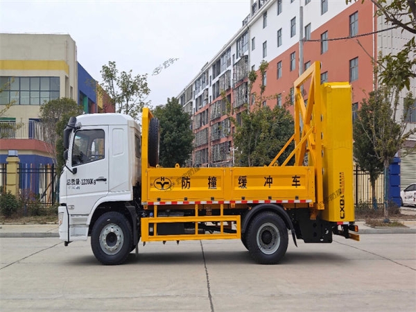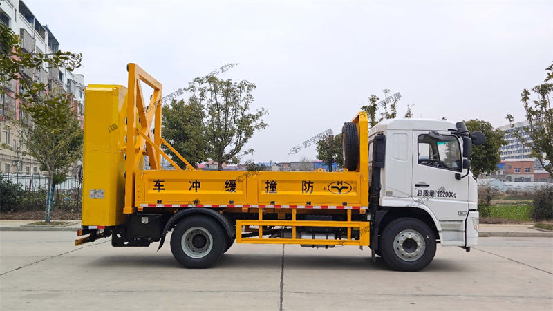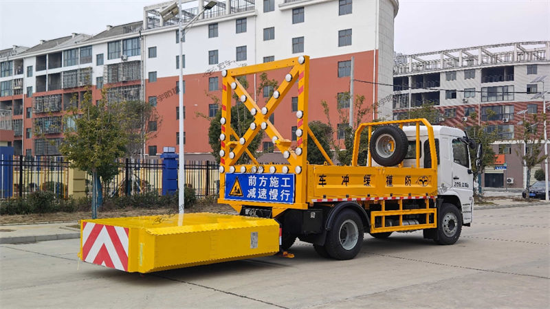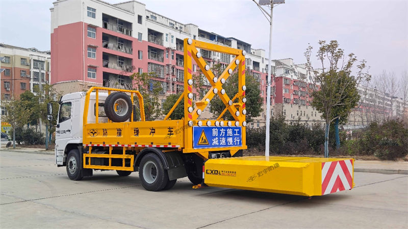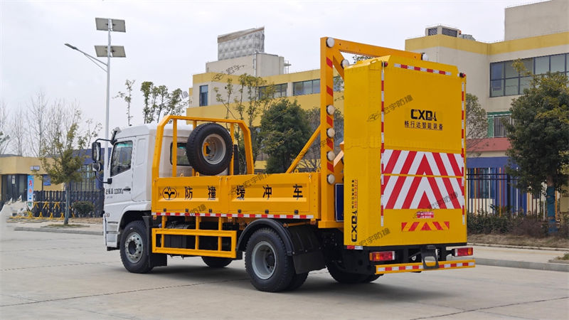 箱体采用国标优质板材制作,箱体后部防撞缓冲模块包采用国际知名技术产品畅行达100K防撞缓冲模块,防撞缓冲吸能模块主要由车载防撞缓冲垫和导向标志架组成,充当施工作业车辆后方的缓冲卫士。如若发生追尾事故,能够在肇事车辆和前方施工作业区域之间构建一个缓冲区域,通过机具结构变形吸收撞击的能量,最大限度地降低被保护人员及设备遭到碰撞的几率。