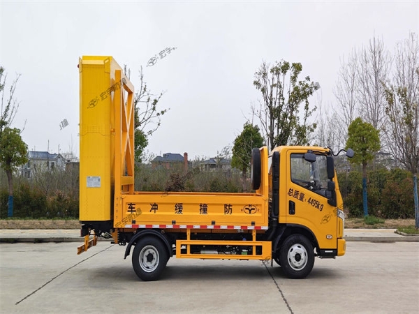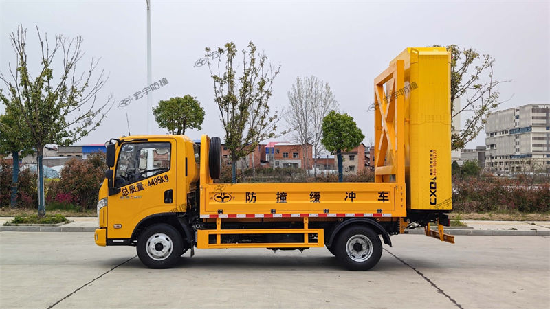 上装配置:箱体采用国标优质板材制作,箱体后部防撞缓冲模块包采用国际知名技术产品畅行达100K防撞缓冲模块,防撞缓冲吸能模块主要由车载防撞缓冲垫和导向标志架组成,充当施工作业车辆后方的缓冲卫士。如若发生追尾事故,能够在肇事车辆和前方施工作业区域之间构建一个缓冲区域,通过机具结构变形吸收撞击的能量,最大限度地降低被保护人员及设备遭到碰撞的几率。LED矩阵式爆闪灯,可实现单独向左、向右和禁止通行;高性能液压系统,可实现快速举升和降落,安全稳定。防撞缓冲模块具有国家权威检测报告。