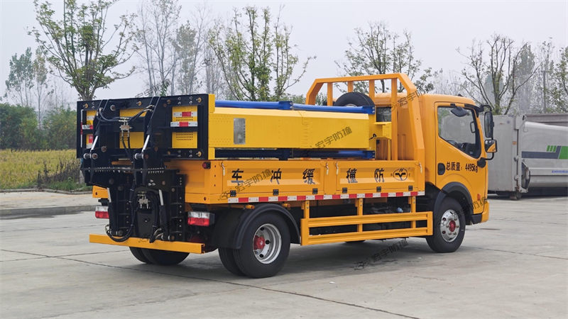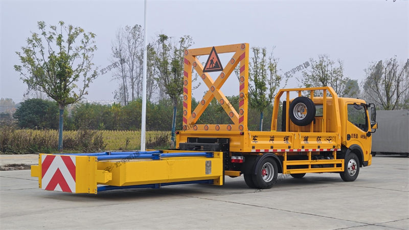 上装配置:箱体采用国标优质板材制作,箱体后部防撞缓冲模块包采用国际知名技术产品畅行达100K防撞缓冲模块,防撞缓冲吸能模块主要由车载防撞缓冲垫和导向标志架组成,充当施工作业车辆后方的缓冲卫士。如若发生追尾事故,能够在肇事车辆和前方施工作业区域之间构建一个缓冲区域,通过机具结构变形吸收撞击的能量,最大限度地降低被保护人员及设备遭到碰撞的几率。LED矩阵式爆闪灯,可实现单独向左、向右和禁止通行;高性能液压系统,可实现快速举升和降落,安全稳定。防撞缓冲模块具有国家权威检测报告。