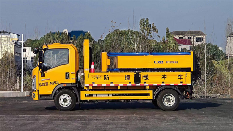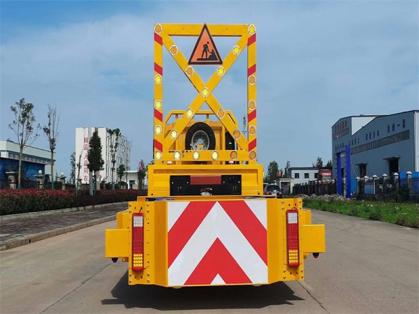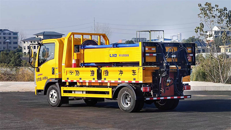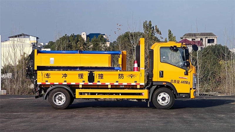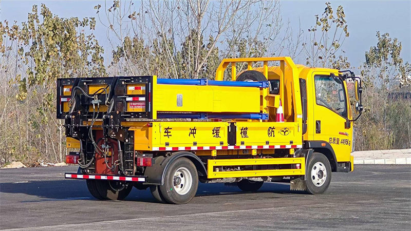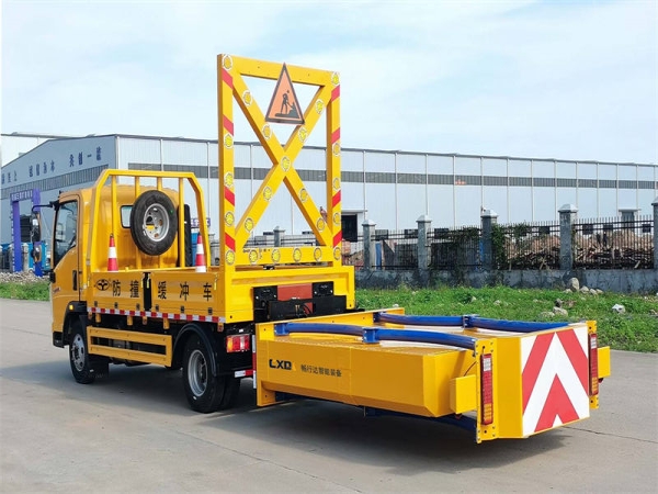 货箱采用国标优质板材质做,箱体后部防撞缓冲模块包采用国际知名品牌公司技术产品畅行达100K防撞缓冲模块,防撞缓冲吸能模块主要由车载防撞缓冲垫(和导向标志架)组成,充当施工作业车辆后方的缓冲卫士。如若发生追尾事故,能够在肇事车辆和前方施工作业区域之间构建一个缓冲区域,通过机具结构变形吸收撞击的能量,最大限度地降低被保护人员及设备遭到碰撞的几率。高性能液压系统,可实现快速举升和落下操作,安全高效,方便快捷。