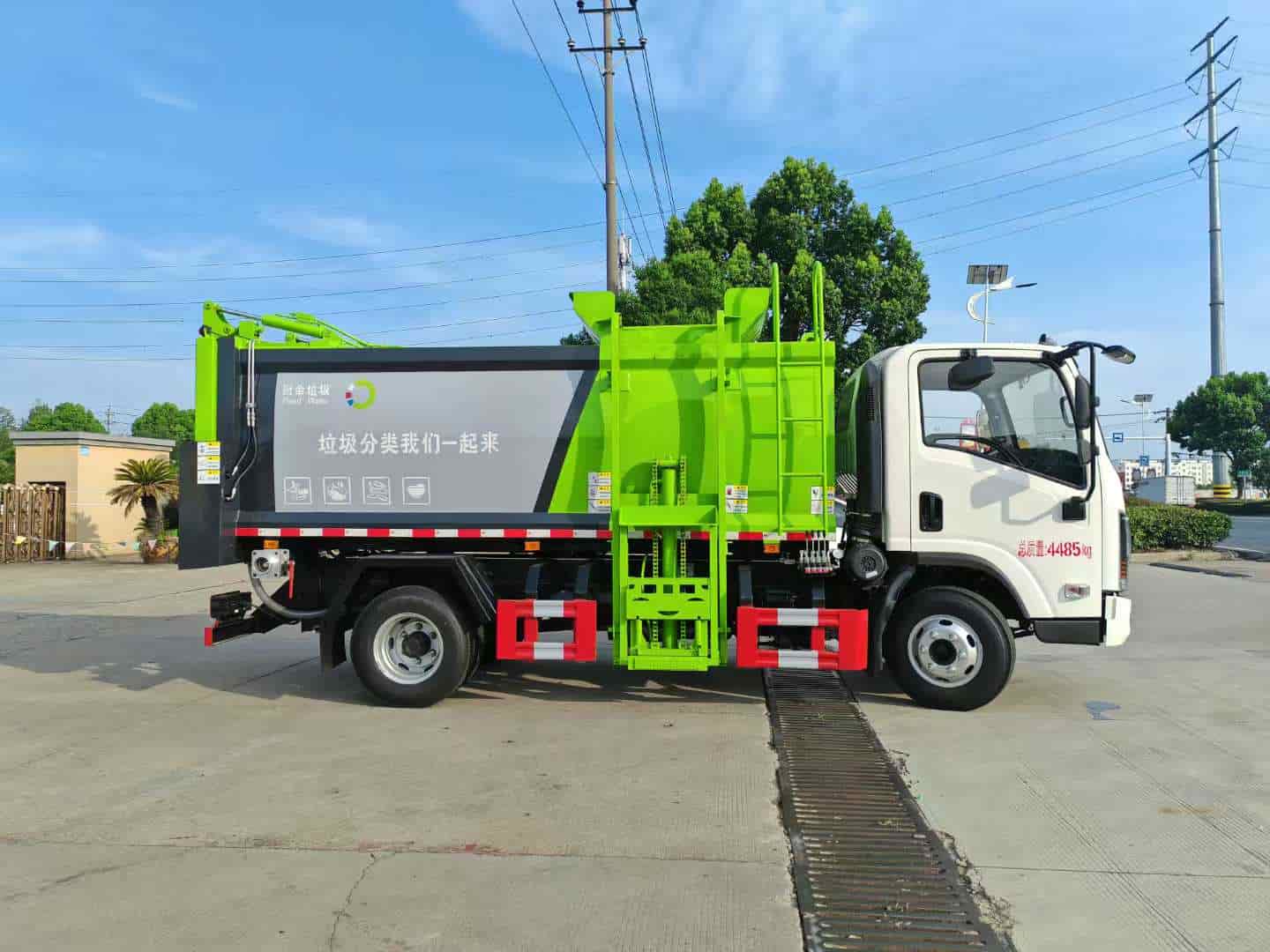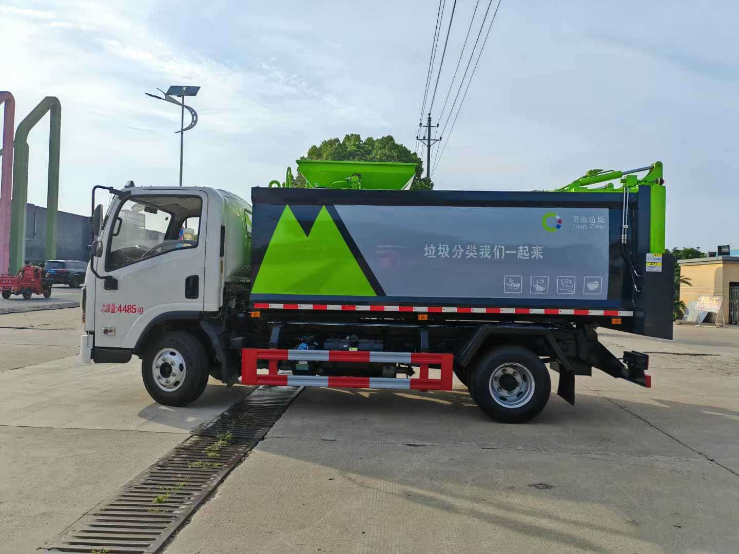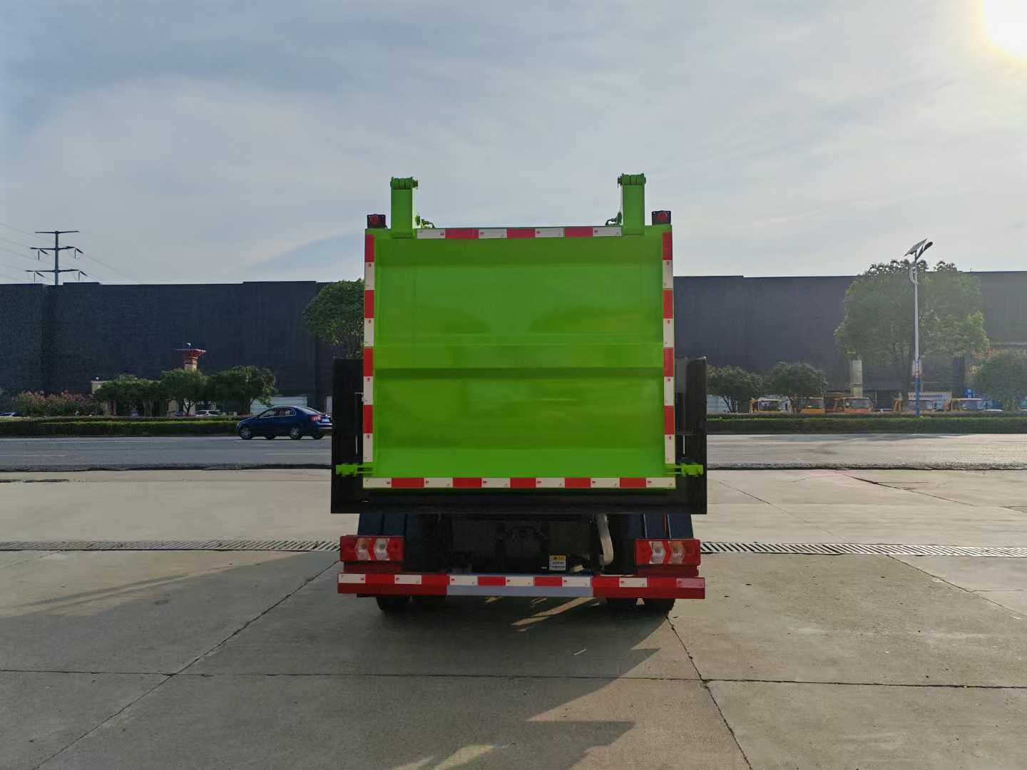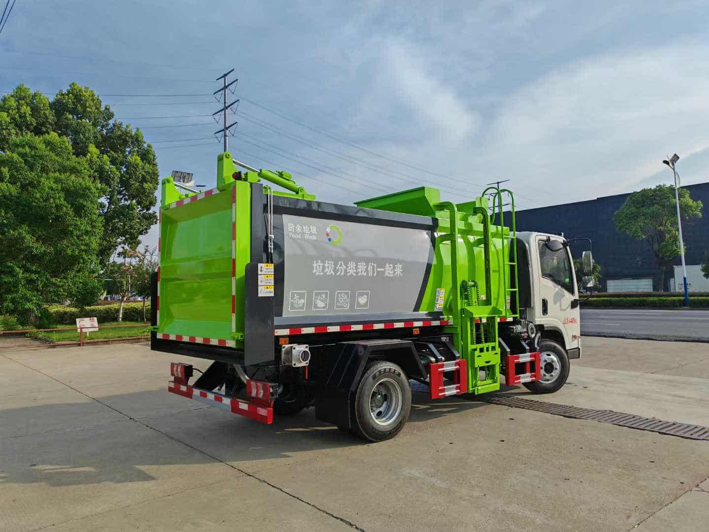 上装配置:采用Q710高强钢,边2底4轻量化设计,加强型方形罐体,采用国内知名品牌液压系统(国产知名油泵、湖南长沙国产知名多路阀、餐厨专用定制油缸、浙江嘉善取力器),①选装拉杆或链条式提升机,可挂120L/240L标准塑料垃圾桶。②后盖液压开启、液压锁紧,后盖带有密封条,搭配插销可调节式液压锁紧保证滴水不漏。③中置双顶举升卸料,卸料角度可根据需求调节。④带无线遥控操作更方便。