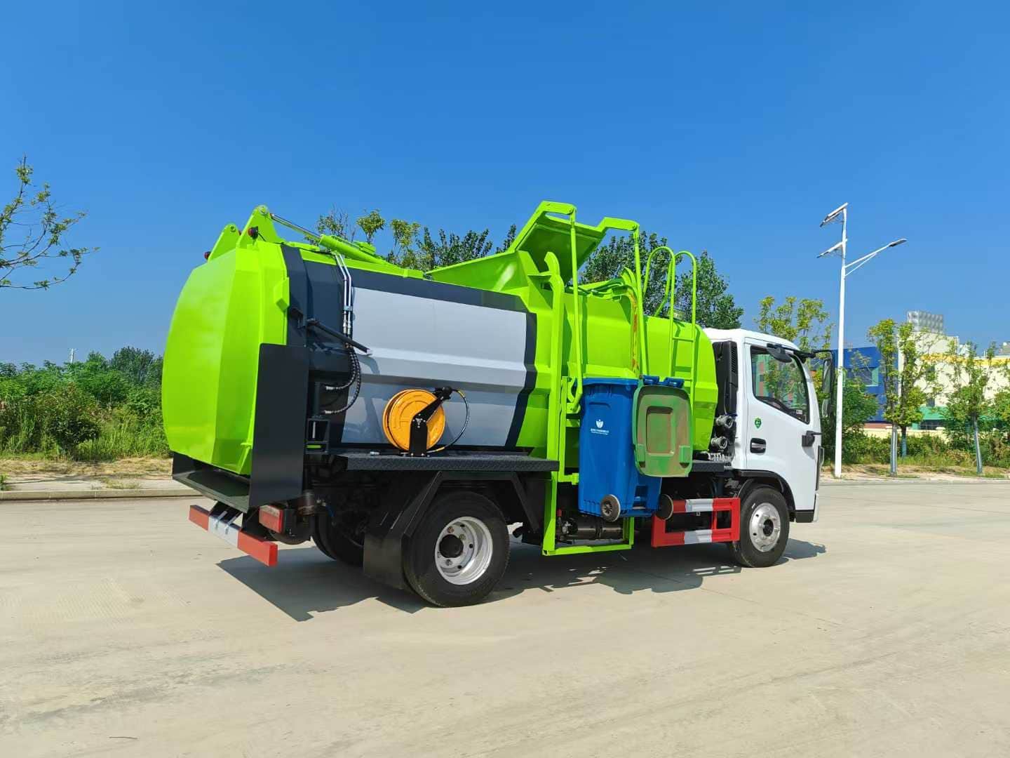 ①选装拉杆或链条式提升机,可挂120L/240L标准塑料垃圾桶。