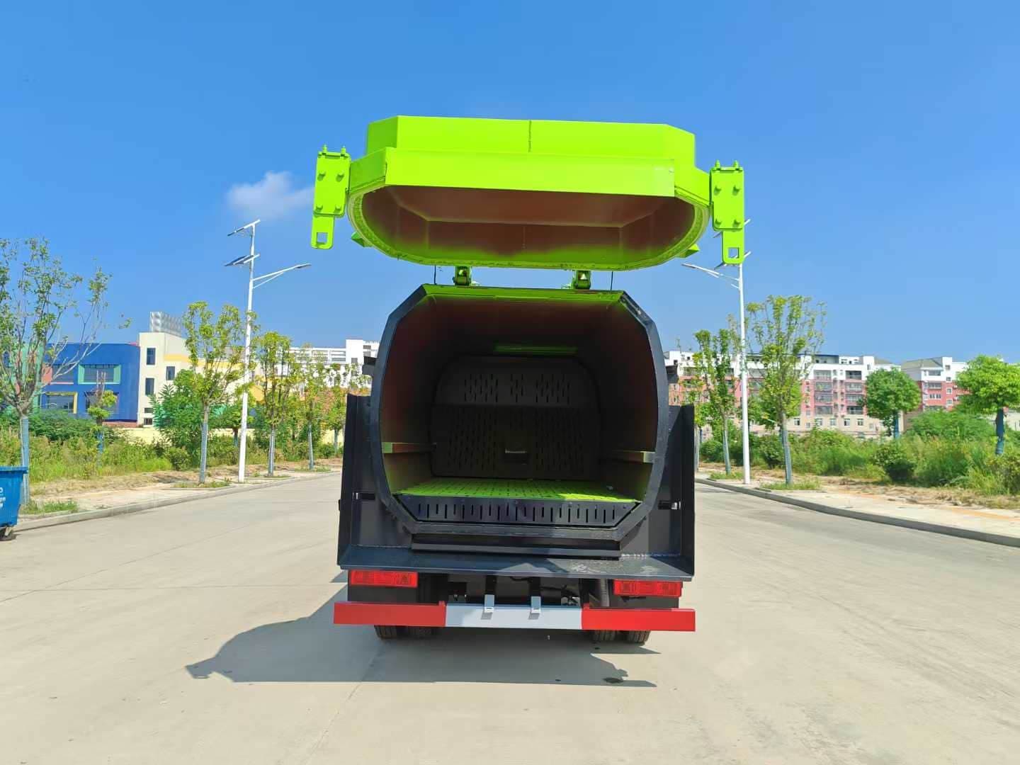 上装配置:采用Q710高强钢,边3底4轻量化设计,大容量。加强型方形罐体,采用国内知名品牌液压系统(国产知名油泵、湖南长沙国产知名多路阀、餐厨专用定制油缸、浙江嘉善取力器),