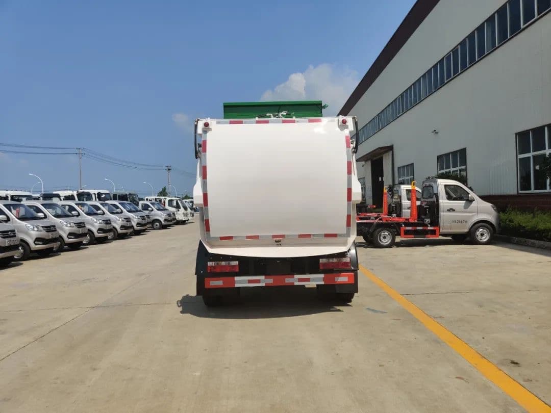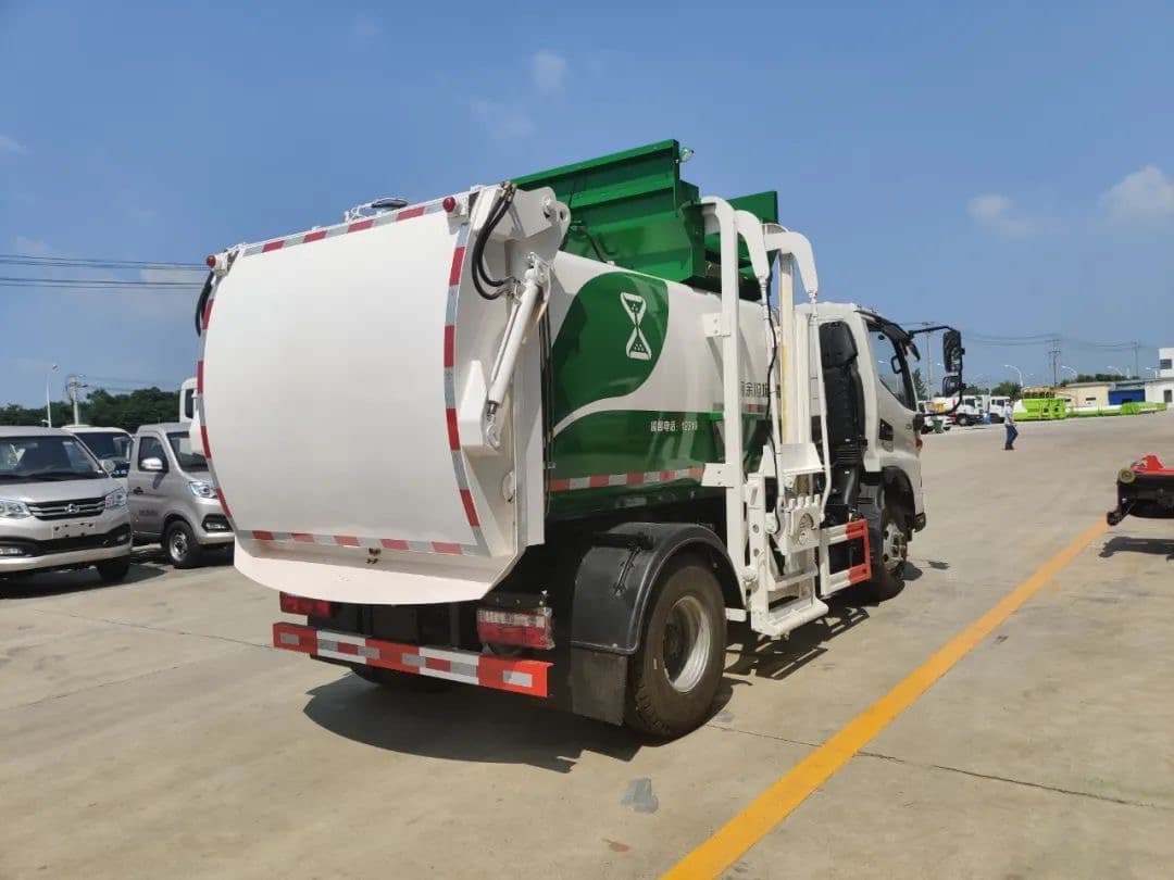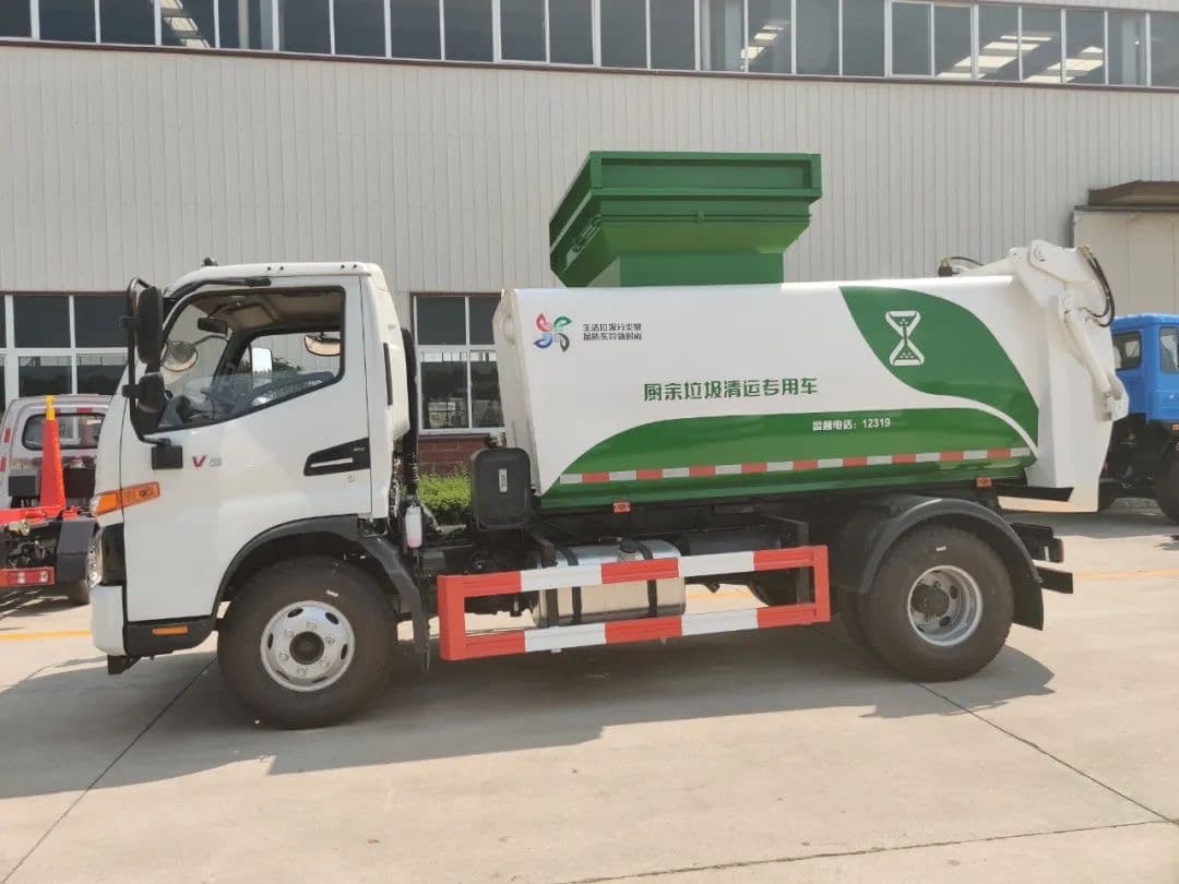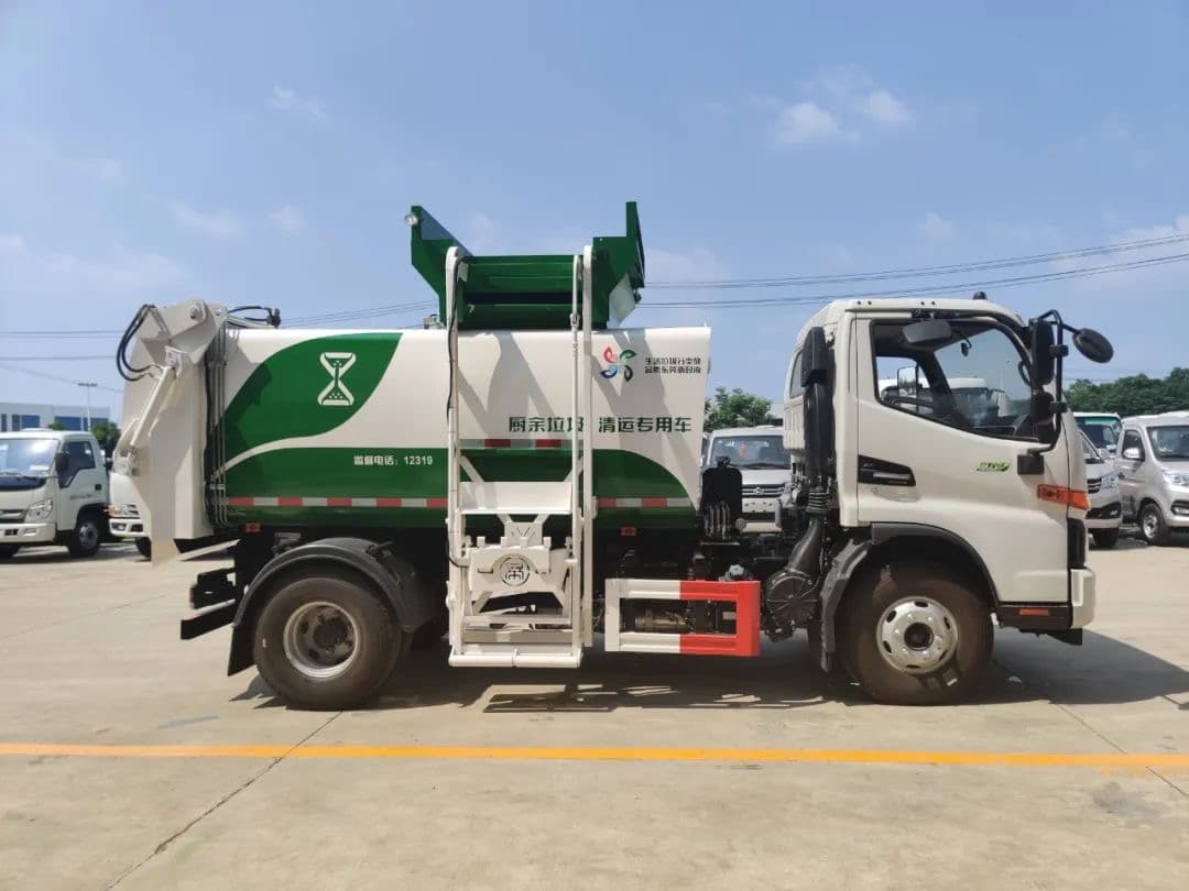 5.箱体后部设置导流槽,餐厨垃圾在自卸过程中通过流体力学设计的导流槽流 走,除了美观,最重要的是倾倒的餐厨垃圾不会污染车体,保持车身的洁净。