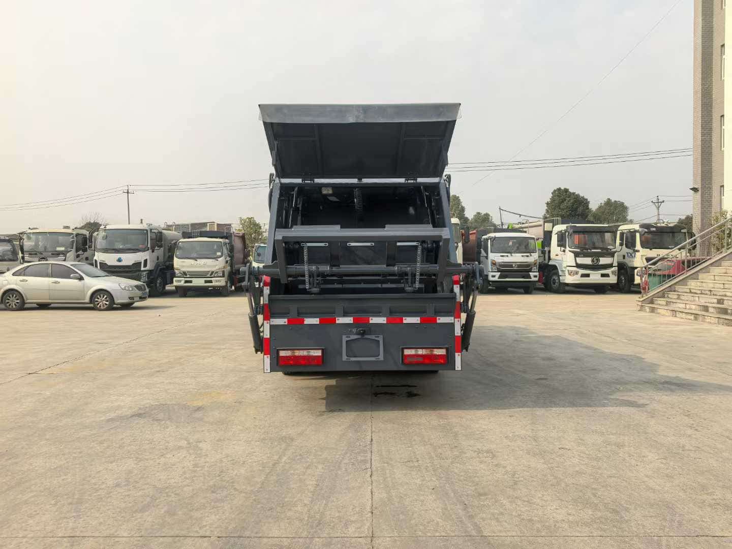 带无线遥控器,背压阀,一体式滑块,液压油箱带清理孔,箱体做喷砂处理,环氧富锌防锈底漆,标配翻转架可挂2个240升国标垃圾桶,加装侧污水箱,加装防尘盖,