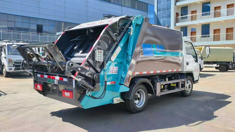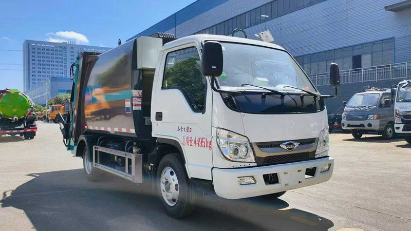全柴2.5排量150马力发动机,万里扬五档箱,3280轴距,650钢丝胎,箱体采用3毫米T700高强钢板制作,可以装载240升垃圾110桶。