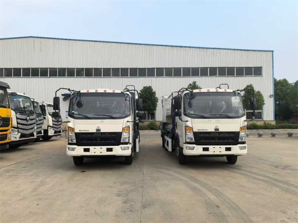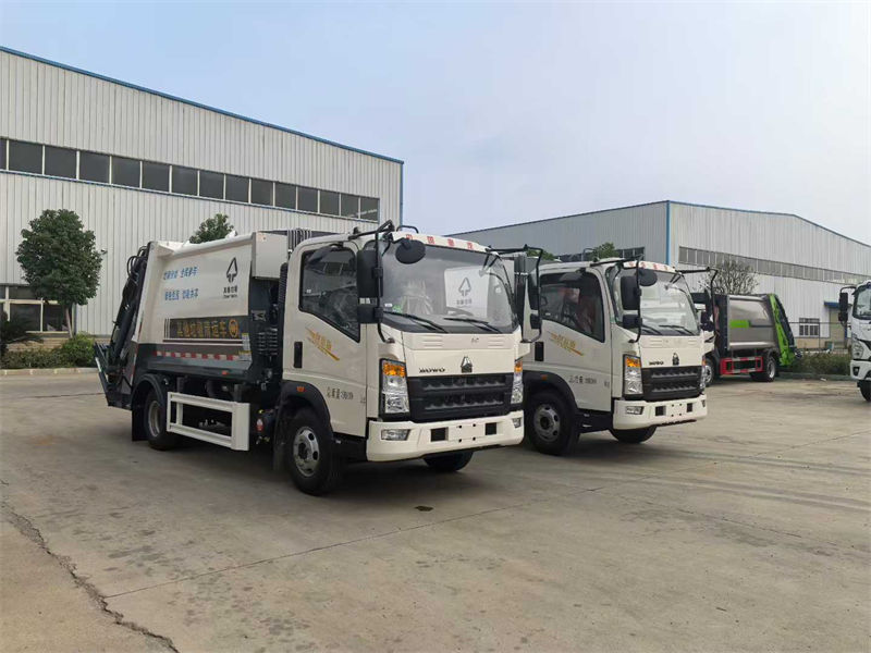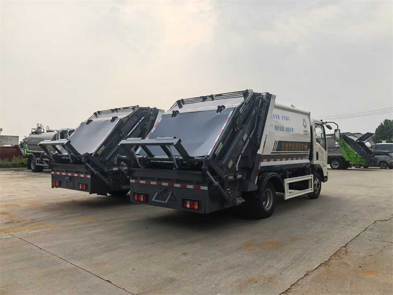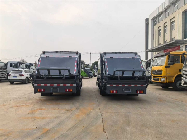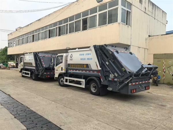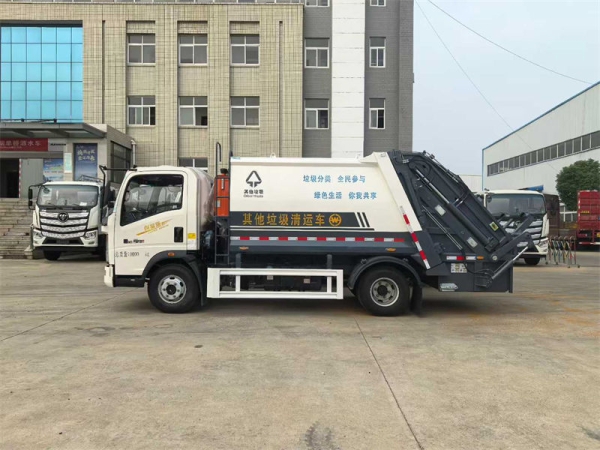 上装配置:弧形箱体,容积8立方,箱体采用Q345锰板,边3mm底4mm,填充器采用Q710高强钢,弧形底板5mm,滑轨8mm,福建山友定制油缸,中梅多路阀,皖液油泵,填装器举升油缸带双向平衡阀,采用湖南长沙CAN总线电控系统,德国伊顿操作面板,日本川户无线遥控器(采用光电开关,带一键操作、手动操作和无线遥控三种控制方式),操作盒共两只(驾驶室内部及后尾部右侧可操作,填充器左侧安装一个急停开关),后填装器标准下部一只污水箱,带防尘盖,其余按公司标准配置制作。